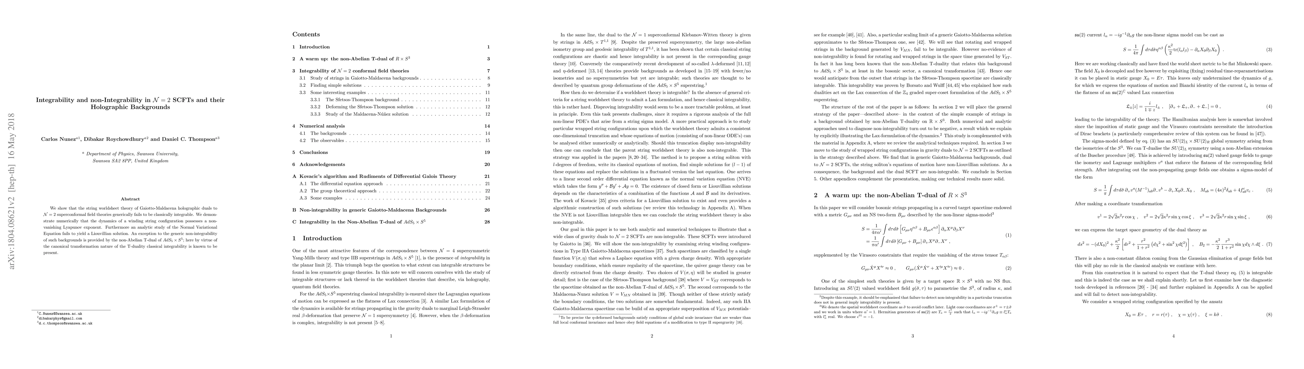 We show that the string worldsheet theory of Gaiotto-Maldacena holographic duals to N=2 superconformal field theories generically fails to be classically integrable. We demonstrate numerically that the dynamics of a winding string configuration possesses a non-vanishing Lyapunov exponent. Furthermore an analytic study of the Normal Variational Equation fails to yield a Liouvillian solution. An exception to the generic non-integrability of such backgrounds is provided by the non-Abelian T-dual of $AdS_5 \times S^5$. Here by virtue of the canonical transformation nature of the T-duality classical integrability is known to be present.