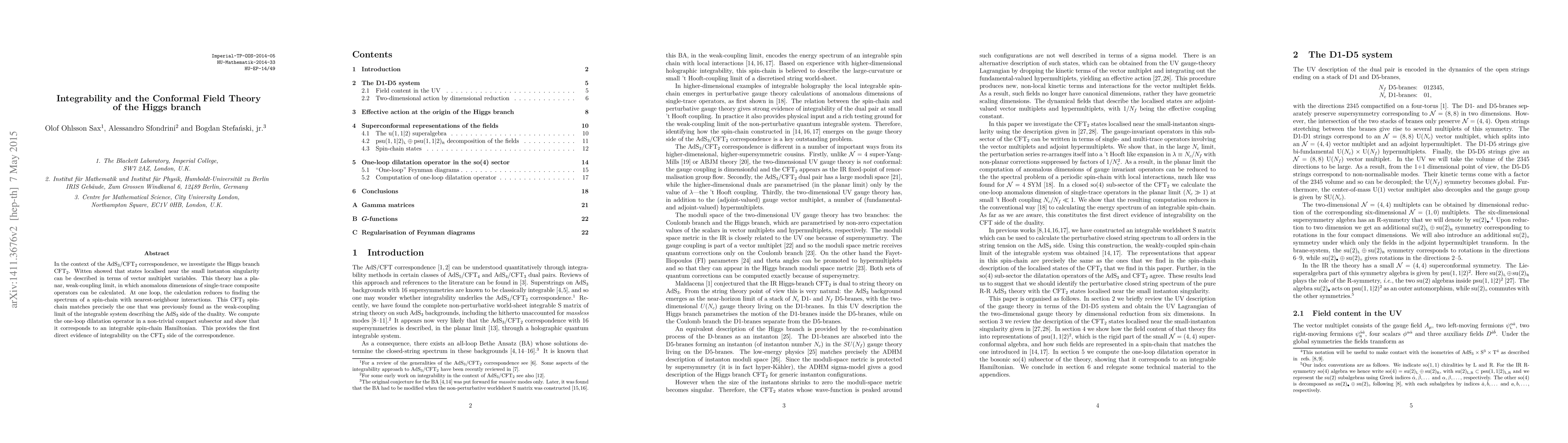 This paper investigates the conformal field theory (CFT$_2$) of the Higgs branch within the AdS$_3$/CFT$_2$ correspondence, demonstrating that the weak-coupling limit of this theory matches the integrable spin-chain Hamiltonian found in the AdS$_3$ side. The authors compute the one-loop dilatation operator, providing direct evidence of integrability on the CFT$_2$ side.