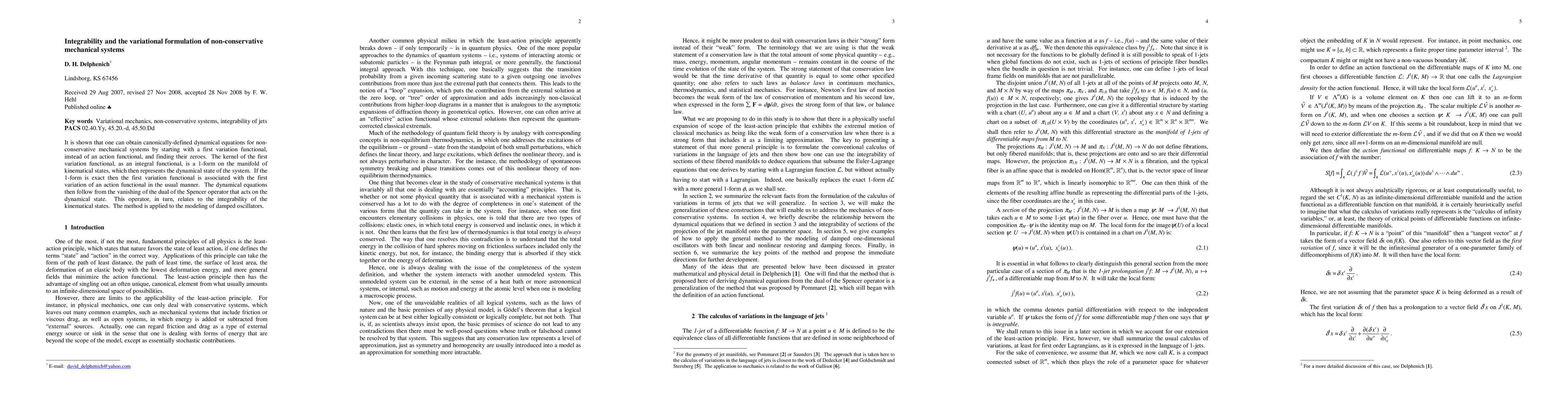 It is shown that one can obtain canonically-defined dynamical equations for non-conservative mechanical systems by starting with a first variation functional, instead of an action functional, and finding their zeroes. The kernel of the first variation functional, as an integral functional, is a 1-form on the manifold of kinematical states, which then represents the dynamical state of the system. If the 1-form is exact then the first variation functional is associated with the first variation of an action functional in the usual manner. The dynamical equations then follow from the vanishing of the dual of the Spencer operator that acts on the dynamical state. This operator, in turn, relates to the integrability of the kinematical states. The method is applied to the modeling of damped oscillators.
