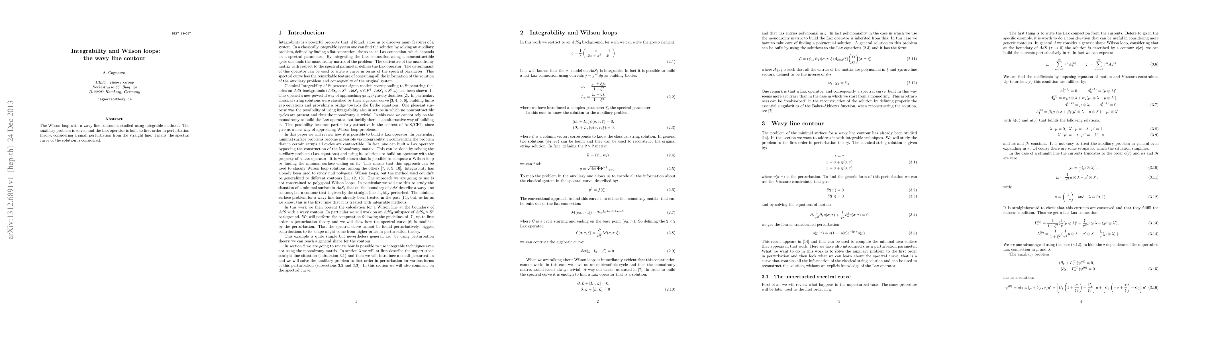 This paper investigates the Wilson loop with a wavy line contour through integrable methods, solving the auxiliary problem and constructing the Lax operator to first order in perturbation theory, ultimately examining the spectral curve of the solution.