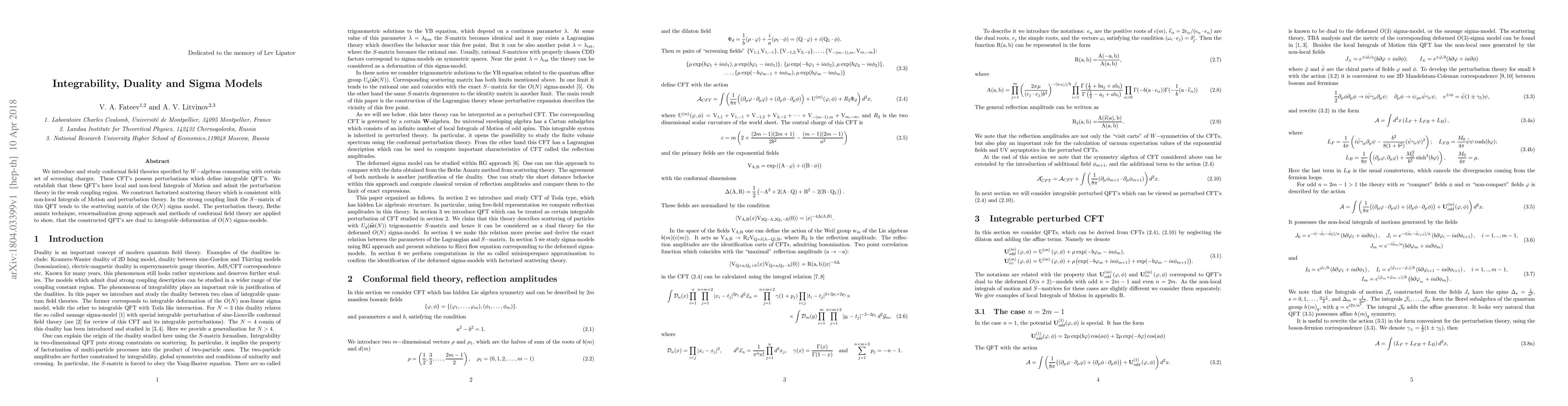 Researchers develop a new class of conformal field theories that admit integrable quantum systems with local and non-local integrals of motion. These theories are shown to be dual to deformations of the O(N) sigma model.