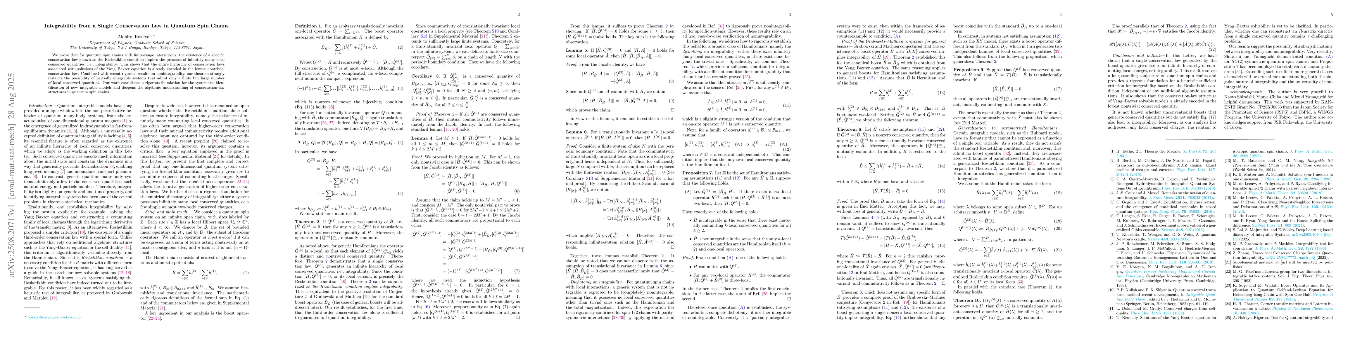 We prove that for quantum spin chains with finite-range interactions, the existence of a specific conservation law known as the Reshetikhin condition implies the presence of infinitely many local conserved quantities, i.e., integrability. This shows that the entire hierarchy of conservation laws associated with solutions of the Yang--Baxter equation is already encoded in the lowest nontrivial conservation law. Combined with recent rigorous results on nonintegrability, our theorem strongly restricts the possibility of partially integrable systems that admit only a finite but large number of local conserved quantities. Our work establishes a rigorous foundation for the systematic identification of new integrable models and deepens the algebraic understanding of conservation-law structures in quantum spin chains.