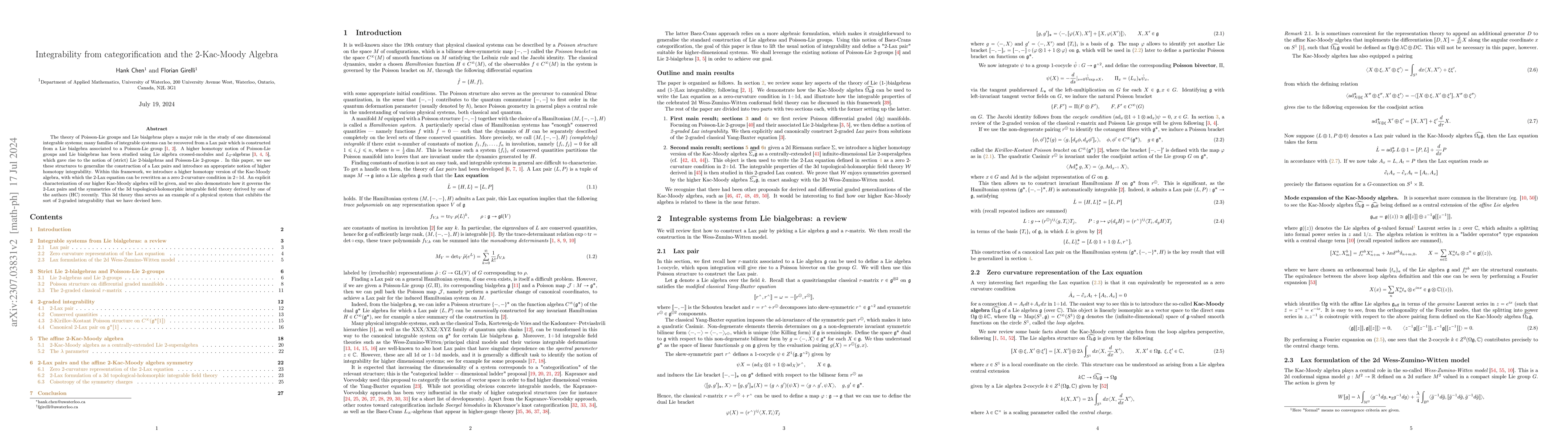 The theory of Poisson-Lie groups and Lie bialgebras plays a major role in the study of one dimensional integrable systems. Many families of integrable systems can be recovered from a Lax pair which is constructed from a Lie bialgebra associated to a Poisson-Lie group. Some categorified notions of Poisson Lie groups and Lie bialgebras has been proposed using $L_2$-algebras (arXiv:1109.1344 and arxiv:1202.0079), which gave rise to the notions of (strict) Lie 2-bialgebras and Poisson-Lie 2-groups . In this paper, we use these structures to generalize the construction of a Lax pair and introduce an appropriate notion of {categorified integrability}. Within this framework, we explicitly construct and analyze the 2-dimensional version of the XXX model, whose dynamics is governed by an underlying Lie 2-bialgebra. We emphasize that the 2-graded form of our categorified notion of integrability directly implies the 2-dimensional nature of the degrees-of-freedom in our theory.