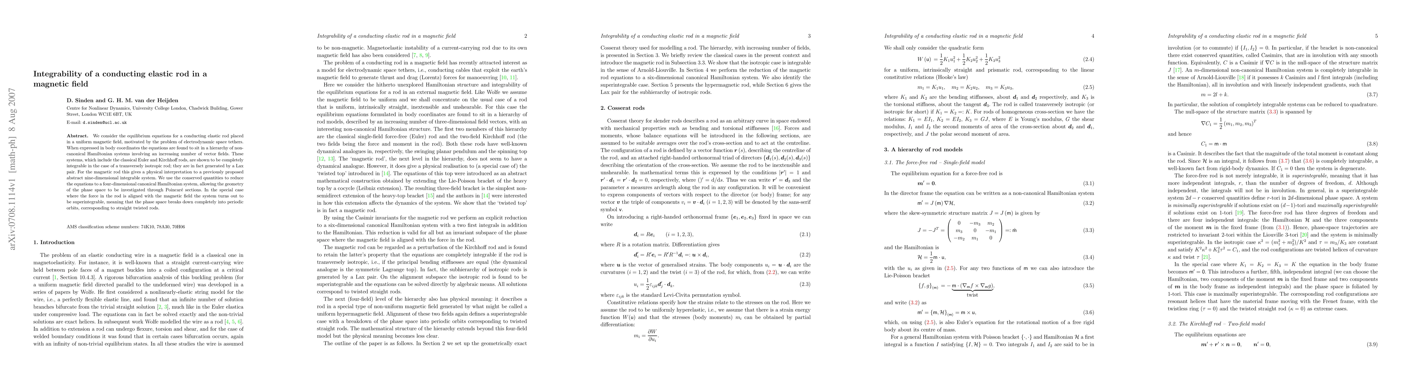 This paper investigates the integrability of a conducting elastic rod in a magnetic field, showing that the system is completely integrable for transversely isotropic rods, and superintegrable when forces align with the magnetic field, leading to periodic orbits representing straight twisted rods.