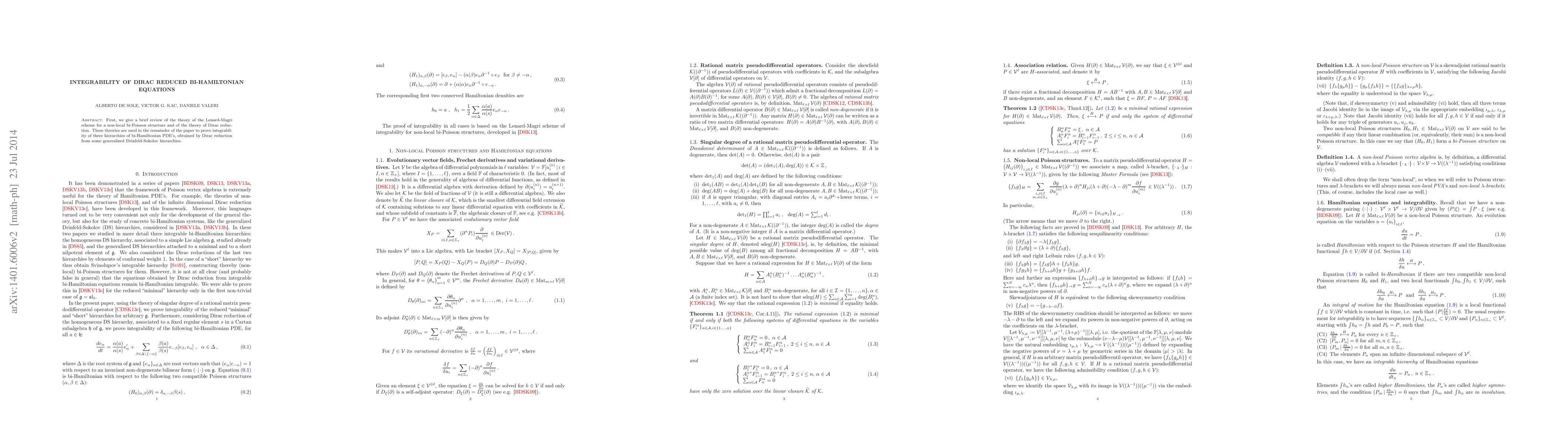 This paper reviews the Lenard-Magri scheme and Dirac reduction theories to demonstrate the integrability of three hierarchies of bi-Hamiltonian partial differential equations derived from generalized Drinfeld-Sokolov hierarchies. The focus is on the application of these theories to establish the integrability properties of the reduced systems.