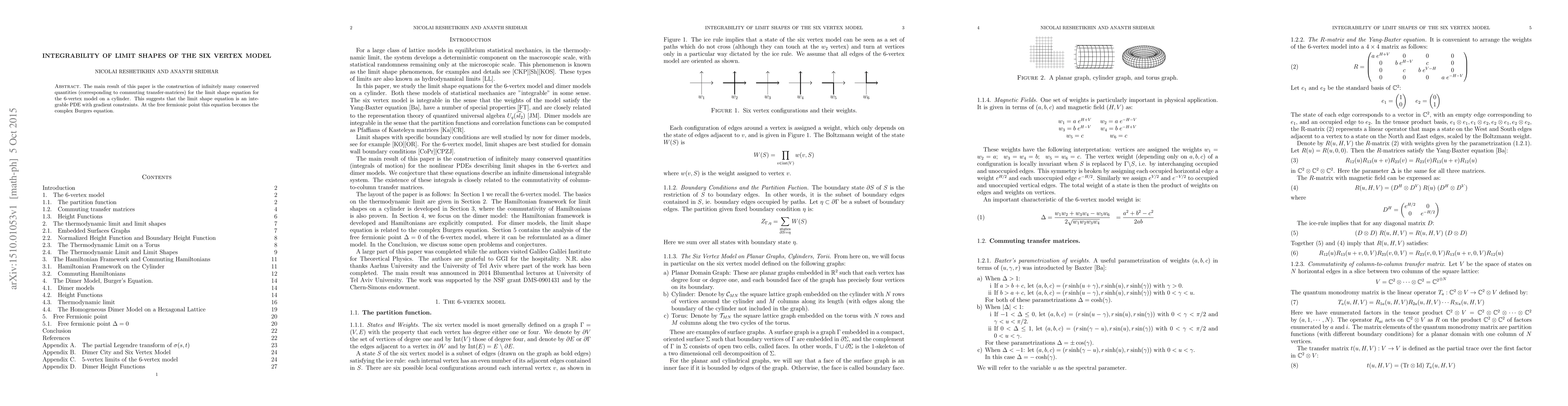 The main result of this paper is the construction of infinitely many conserved quantities (corresponding to commuting transfer-matrices) for the limit shape equation for the 6-vertex model on a cylinder. This suggests that the limit shape equation is an integrable PDE with gradient constraints. At the free fermionic point this equation becomes the complex Burgers equation.