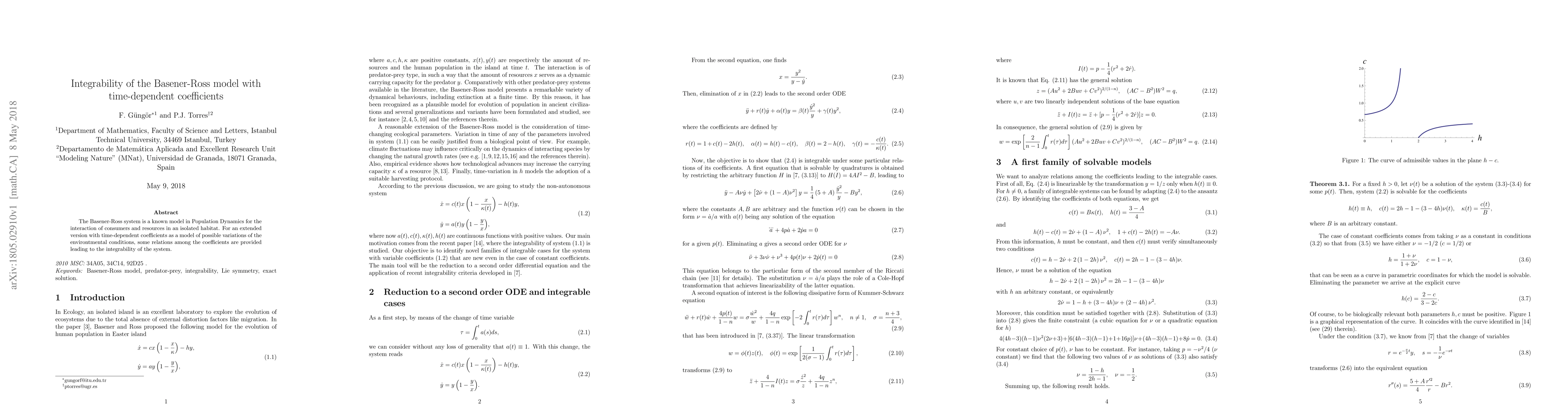 The Basener-Ross system models consumer-resource interactions in isolated habitats; an extended version with time-dependent coefficients reveals specific coefficient relations that lead to the system's integrability.