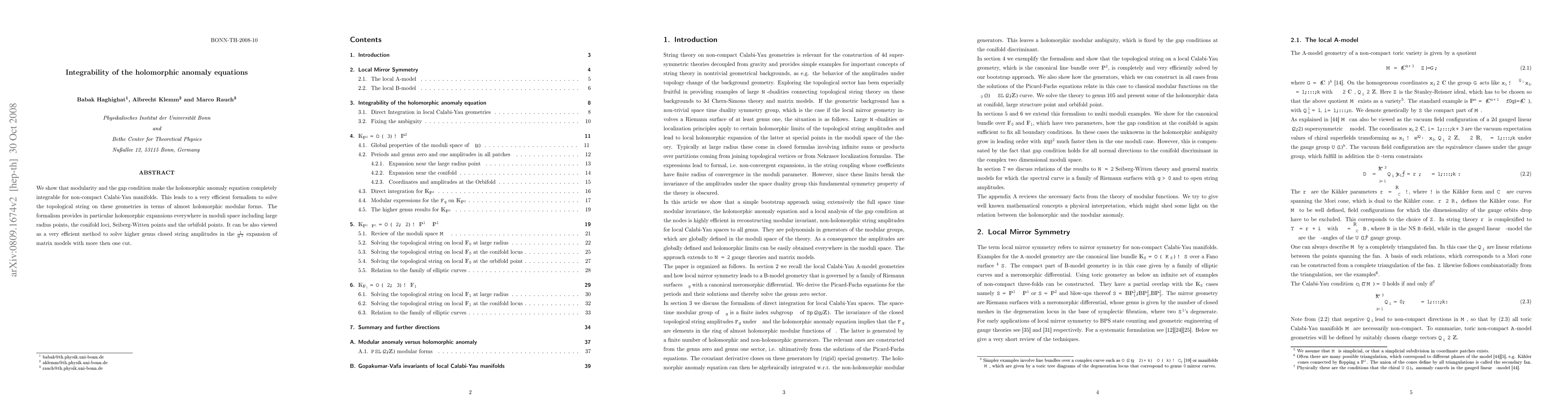 Researchers have developed a formalism to solve topological string theory on non-compact Calabi-Yau manifolds using holomorphic anomaly equations, providing efficient solutions for moduli space expansions.