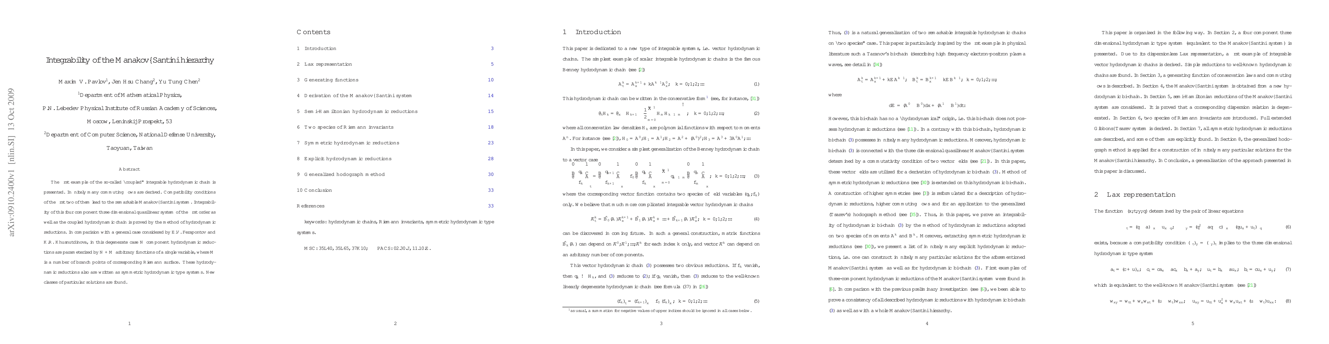 The research presents a methodology involving hydrodynamic reductions and the Gibbons-Tsarev system to prove the integrability of the Manakov-Santini hierarchy, a four-component three-dimensional quasilinear system of the first order.