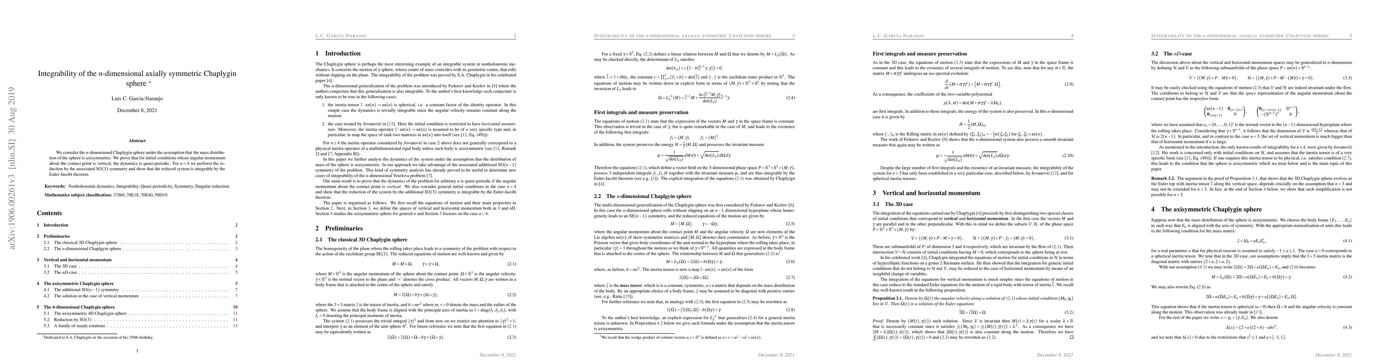 We consider the $n$-dimensional Chaplygin sphere under the assumption that the mass distribution of the sphere is axisymmetric. We prove that for initial conditions whose angular momentum about the contact point is vertical, the dynamics is quasi-periodic. For $n=4$ we perform the reduction by the associated $SO(3)$ symmetry and show that the reduced system is integrable by the Euler-Jacobi theorem.