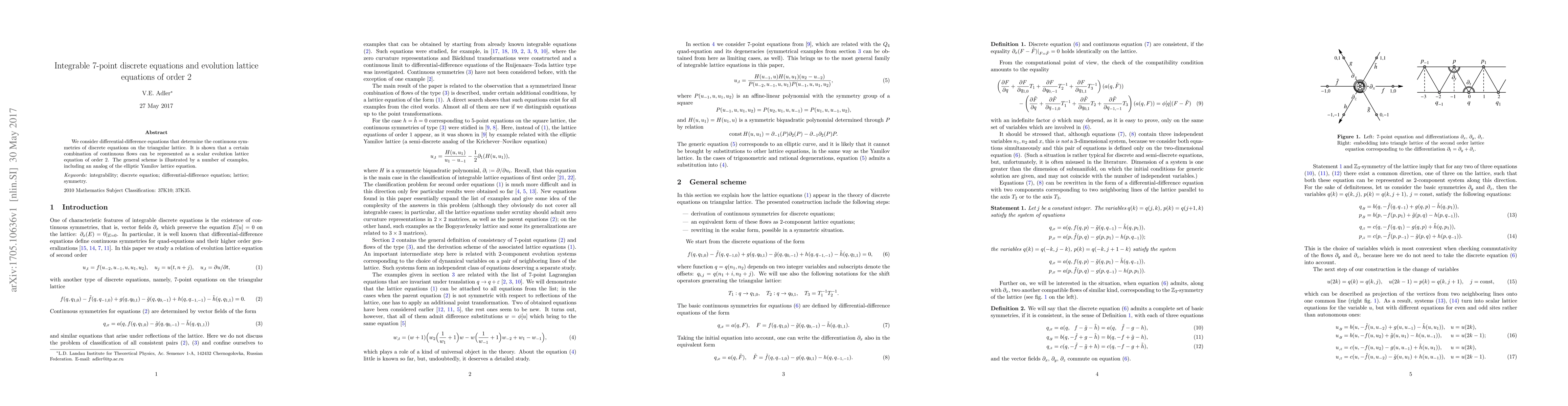 We consider differential-difference equations that determine the continuous symmetries of discrete equations on the triangular lattice. It is shown that a certain combination of continuous flows can be represented as a scalar evolution lattice equation of order 2. The general scheme is illustrated by a number of examples, including an analog of the elliptic Yamilov lattice equation.