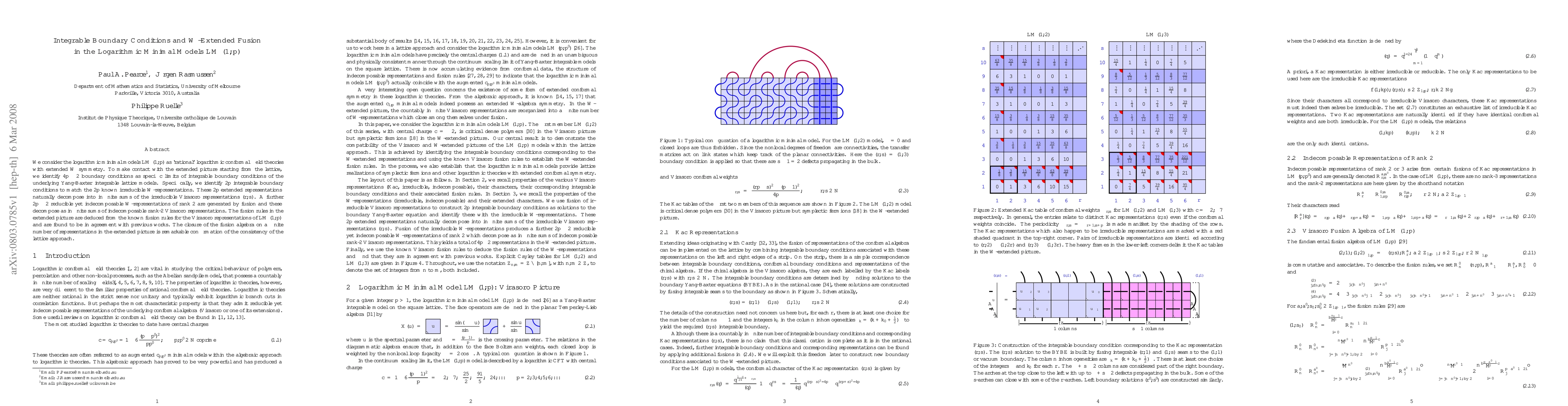 This paper explores integrable boundary conditions in the logarithmic minimal models LM(1,p) and their connection to extended W-symmetry. It identifies 4p-2 boundary conditions as limits of lattice models, matching 2p with irreducible W-representations, and confirms the consistency of the lattice approach through fusion rules.