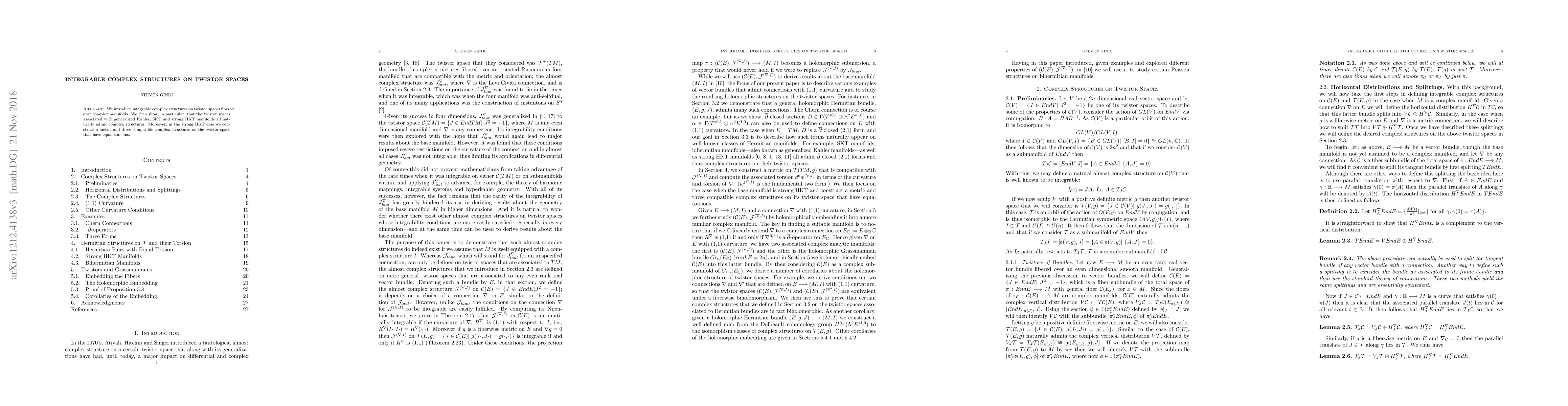 This paper introduces integrable complex structures on twistor spaces over complex manifolds, demonstrating their natural presence in twistor spaces associated with generalized Kähler, SKT, and strong HKT manifolds. In the strong HKT case, it constructs a metric and three compatible complex structures with equal torsions.