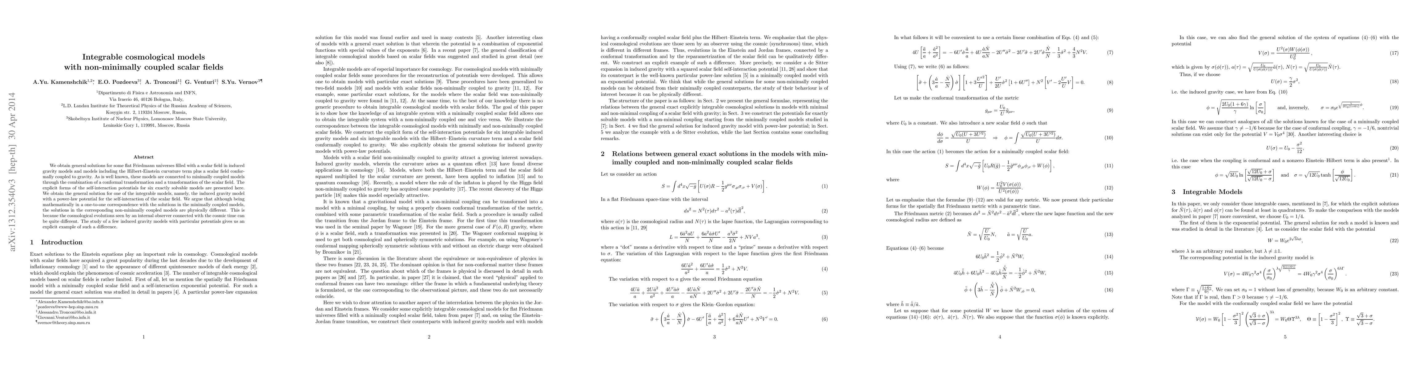 This paper explores general solutions for flat Friedmann universes in models with non-minimally coupled scalar fields, contrasting them with minimally coupled models. It presents explicit forms of self-interaction potentials for six solvable models and argues that despite mathematical correspondence, the physical evolutions differ due to variations in cosmological perception by internal observers.