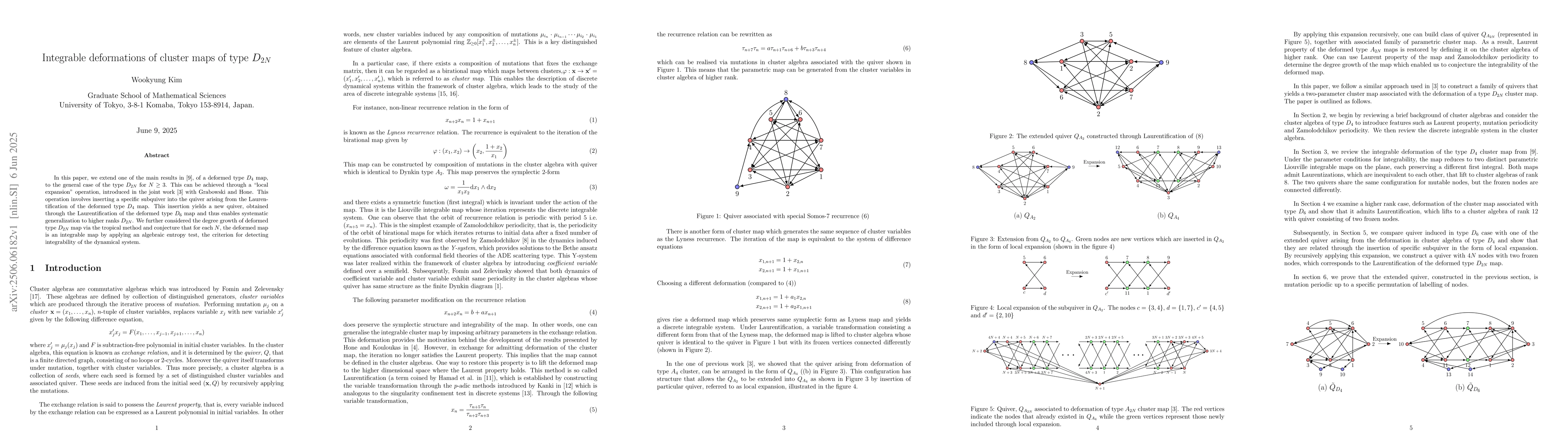 In this paper, we extend one of the main results in \cite{hkm24}, of a deformed type $D_{4}$ map, to the general case of the type $D_{2N}$ for $N\geq3$. This can be achieved through a "local expansion" operation, introduced in the joint work \cite{grab} with Grabowski and Hone. This operation involves inserting a specific subquiver into the quiver arising from the Laurentification of the deformed type $D_{4}$ map. This insertion yields a new quiver, obtained through the Laurentification of the deformed type $D_{6}$ map and thus enables systematic generalization to higher ranks $D_{2N}$. We further considered the degree growth of the deformed type $D_{2N}$ map via the tropical method and conjecture that for each $N$, the deformed map is an integrable map by applying an algebraic entropy test, the criterion for detecting integrability of the dynamical system.