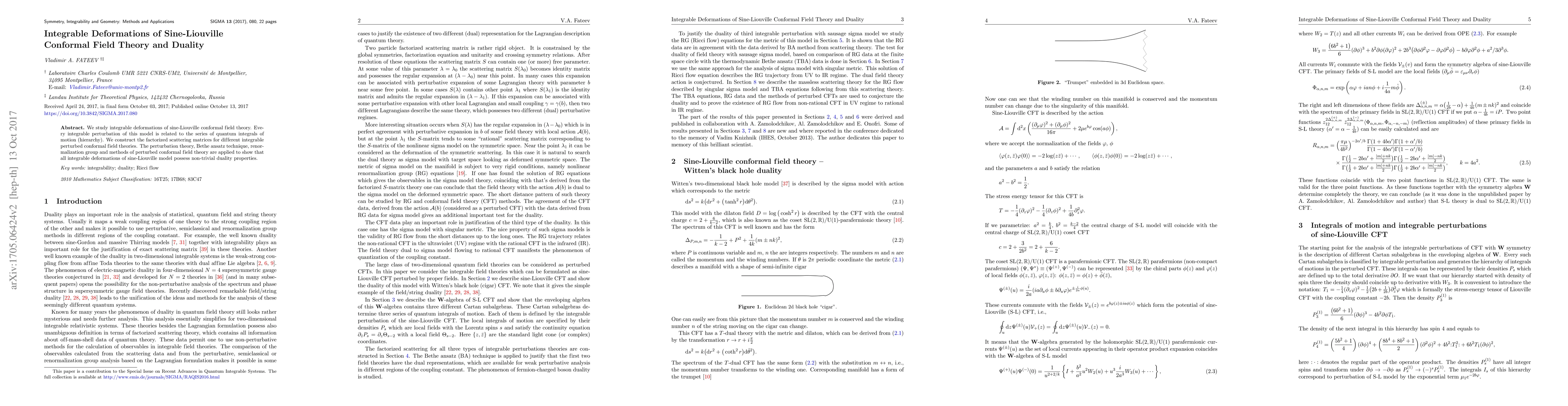 This paper explores integrable deformations of sine-Liouville conformal field theory, demonstrating that each perturbation is associated with a series of quantum integrals of motion. It constructs factorized scattering matrices and utilizes various theoretical methods to prove the non-trivial duality inherent in all integrable deformations of the sine-Liouville model.