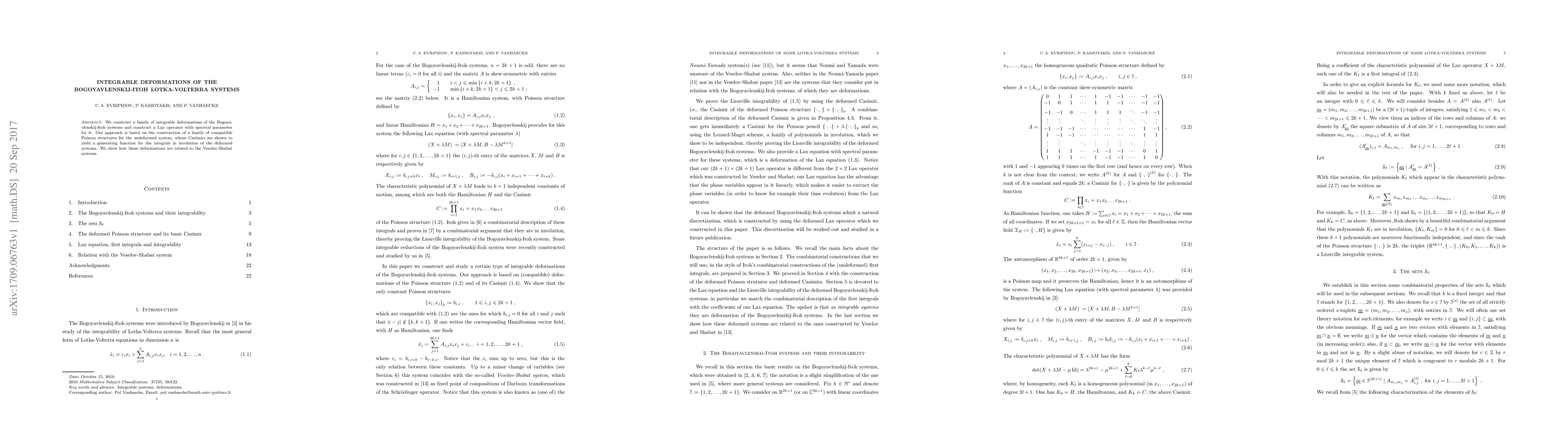 This paper constructs integrable deformations of the Bogoyavlenskij-Itoh Lotka-Volterra systems using compatible Poisson structures, and introduces a Lax operator. The deformations are linked to the Veselov-Shabat systems through generating functions derived from Casimirs.