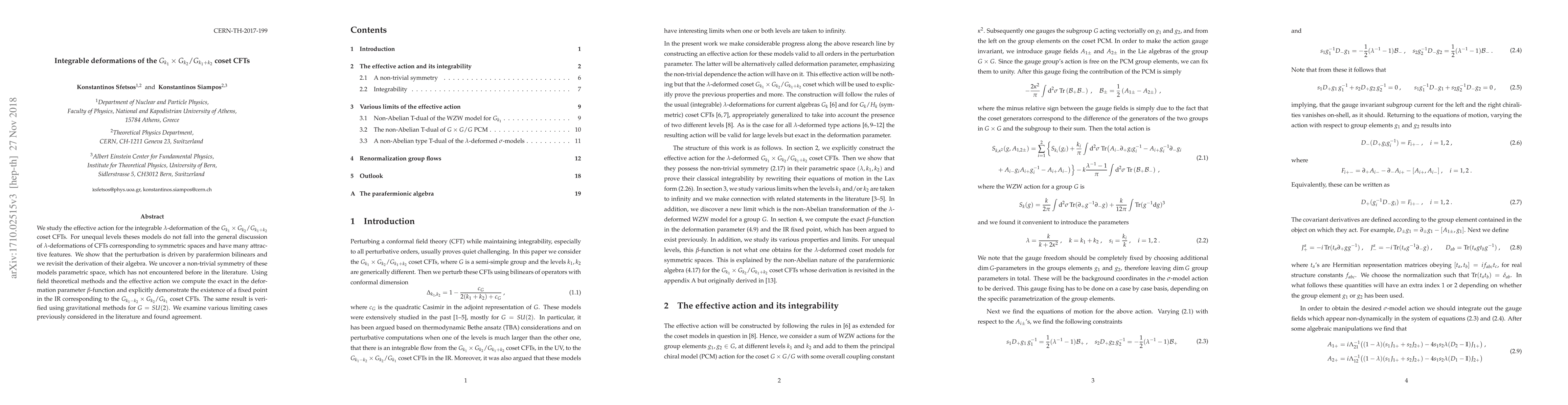 We study the effective action for the integrable $\lambda$-deformation of the $G_{k_1} \times G_{k_2}/G_{k_1+k_2}$ coset CFTs. For unequal levels theses models do not fall into the general discussion of $\lambda$-deformations of CFTs corresponding to symmetric spaces and have many attractive features. We show that the perturbation is driven by parafermion bilinears and we revisit the derivation of their algebra. We uncover a non-trivial symmetry of these models parametric space, which has not encountered before in the literature. Using field theoretical methods and the effective action we compute the exact in the deformation parameter $\beta$-function and explicitly demonstrate the existence of a fixed point in the IR corresponding to the $G_{k_1-k_2} \times G_{k_2}/G_{k_1}$ coset CFTs. The same result is verified using gravitational methods for $G=SU(2)$. We examine various limiting cases previously considered in the literature and found agreement.