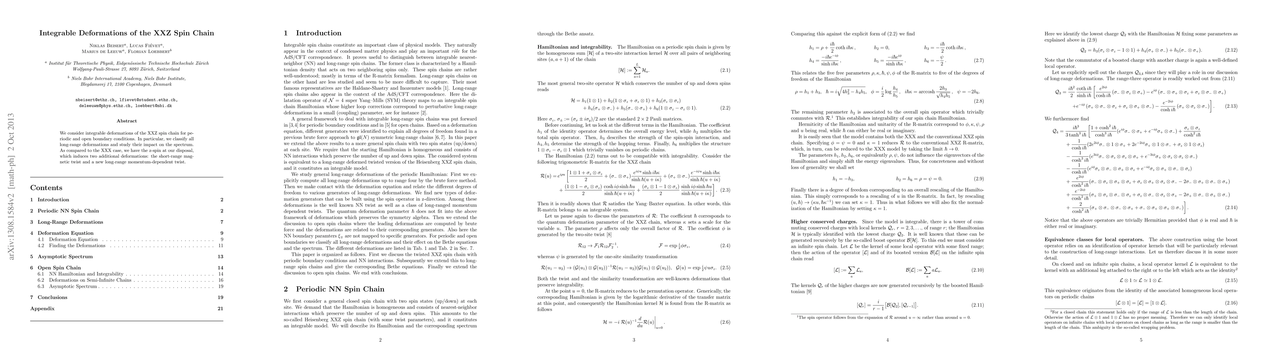 This paper studies integrable deformations of the XXZ spin chain, focusing on long-range deformations and their impact on the spectrum, revealing two additional twists compared to the XXX case.