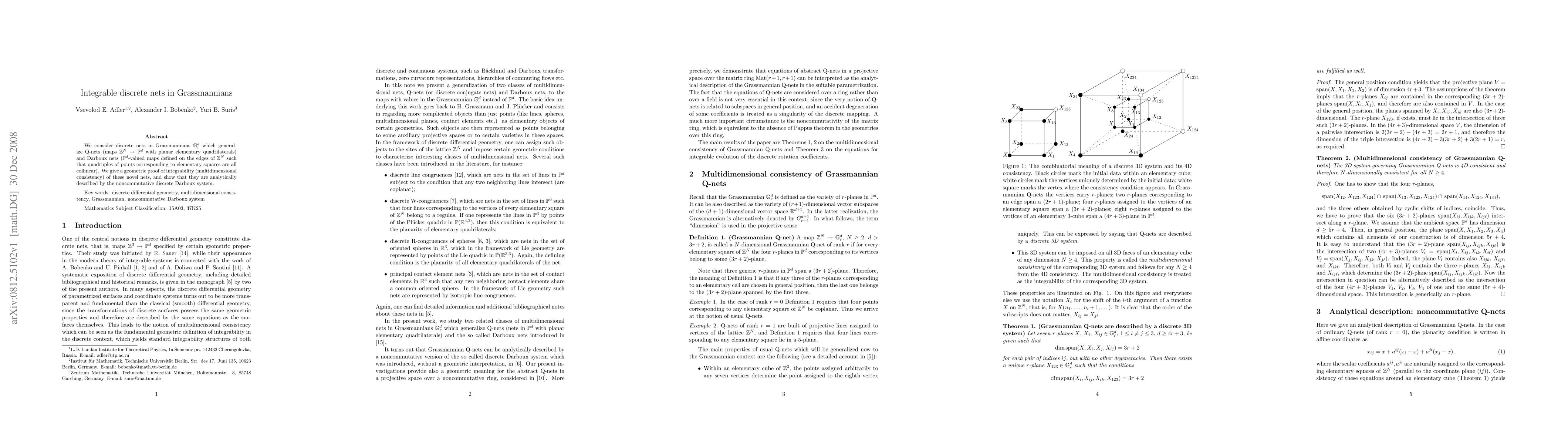 We consider discrete nets in Grassmannians $\mathbb{G}^d_r$ which generalize Q-nets (maps $\mathbb{Z}^N\to\mathbb{P}^d$ with planar elementary quadrilaterals) and Darboux nets ($\mathbb{P}^d$-valued maps defined on the edges of $\mathbb{Z}^N$ such that quadruples of points corresponding to elementary squares are all collinear). We give a geometric proof of integrability (multidimensional consistency) of these novel nets, and show that they are analytically described by the noncommutative discrete Darboux system.