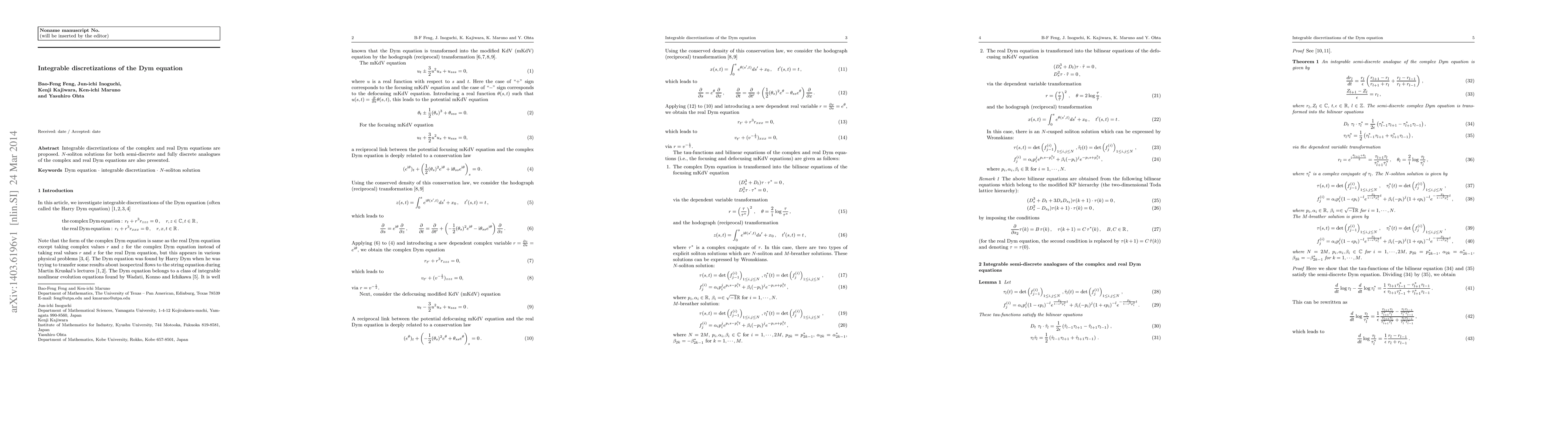 Research proposes integrable discretizations of the Dym equation for complex and real cases, enabling N-soliton solutions in both semi-discrete and fully discrete analogues.