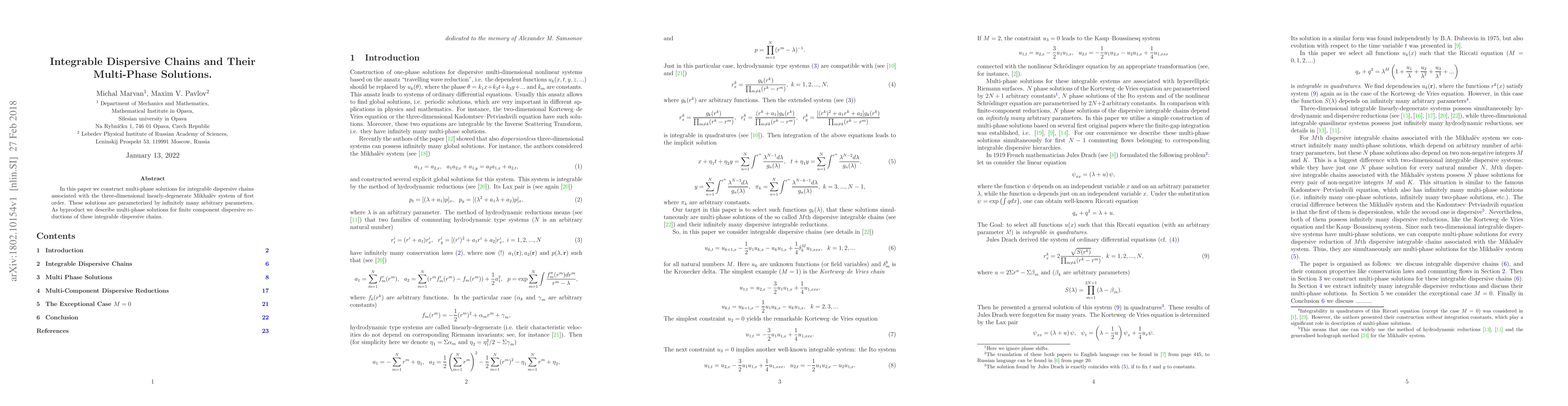 This paper constructs multi-phase solutions for integrable dispersive chains linked to the Mikhalev system, parameterized by infinitely many arbitrary parameters. It also describes multi-phase solutions for finite component dispersive reductions of these chains.
