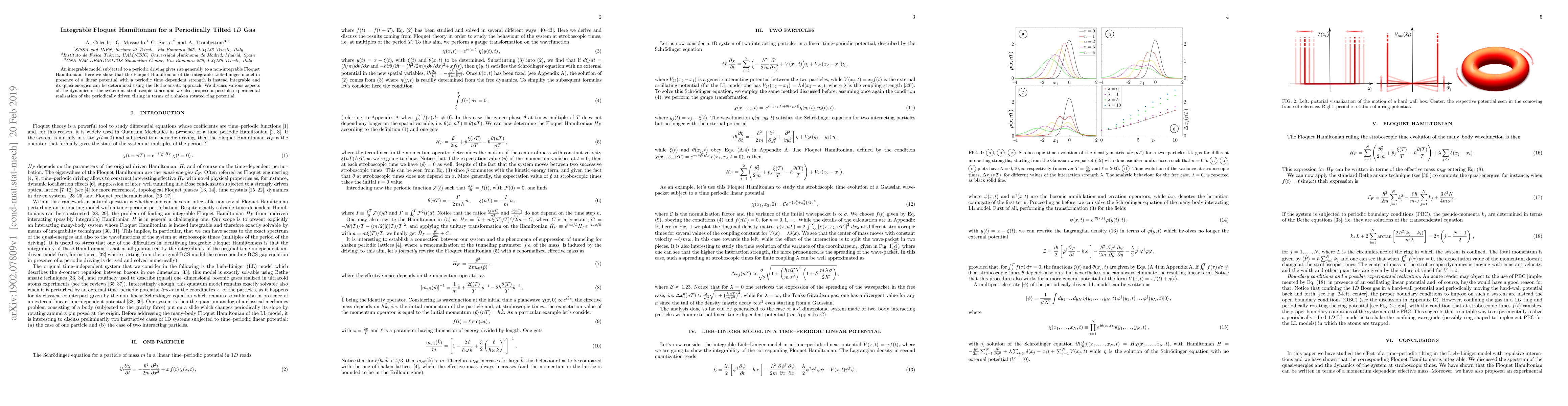 Researchers have found that a periodically tilted 1D gas can exhibit an integrable Floquet Hamiltonian, enabling the prediction of quasi-energies through the Bethe ansatz approach.