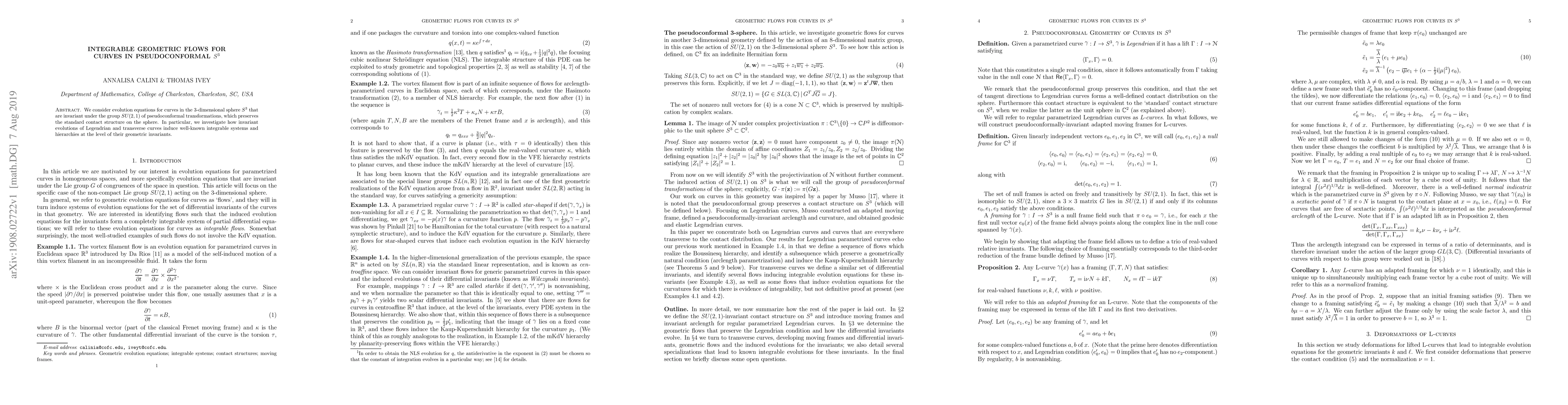 This research explores evolution equations for curves in $S^3$ invariant under $SU(2,1)$ pseudoconformal transformations, revealing how such invariant evolutions generate integrable systems and hierarchies based on geometric invariants. The study highlights the connection between pseudoconformal symmetry and integrable geometric flows.