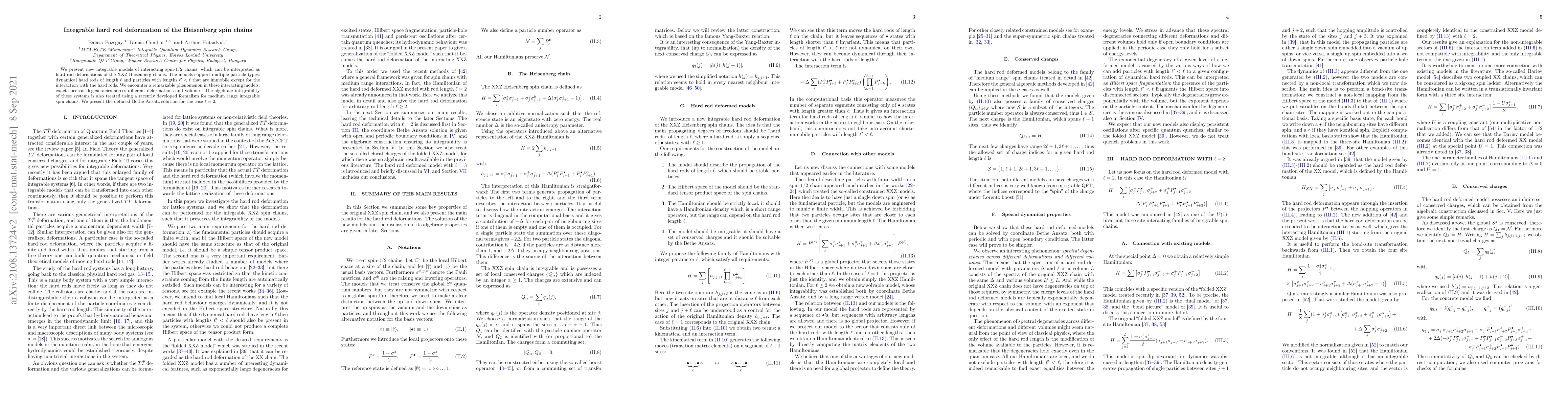 This paper introduces new integrable models of spin-1/2 Heisenberg chains deformed by hard rod interactions, featuring both mobile and immobile particle types. The study reveals exact spectral degeneracies and uses a developed formalism for medium range spin chains, providing a detailed Bethe Ansatz solution for $\ell=2$.