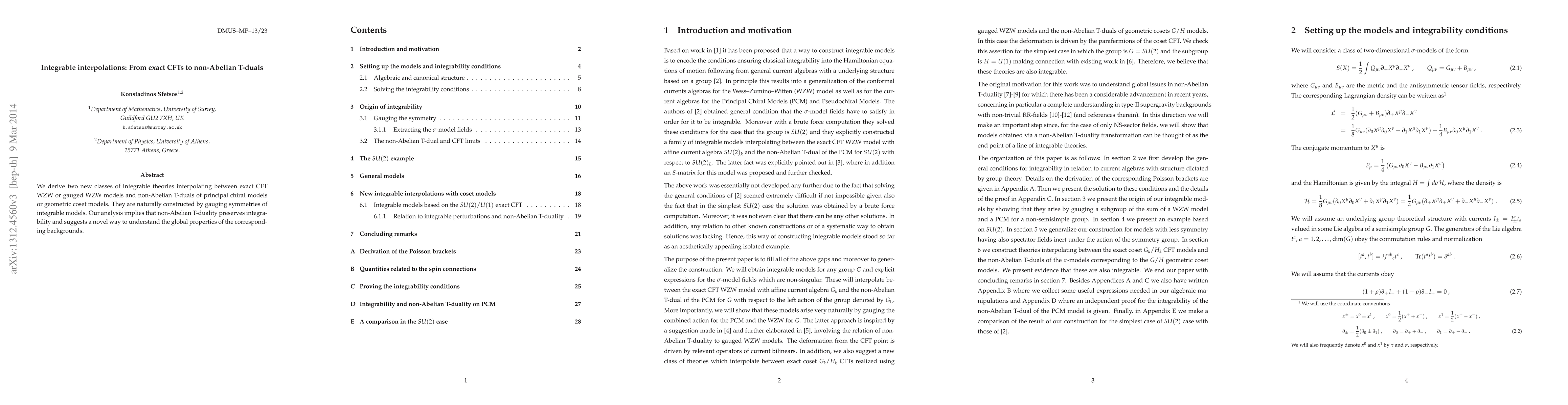 This paper introduces two classes of integrable theories that bridge exact conformal field theories and non-Abelian T-duals, preserving integrability and offering new insights into the global properties of their backgrounds through symmetry gauging.
