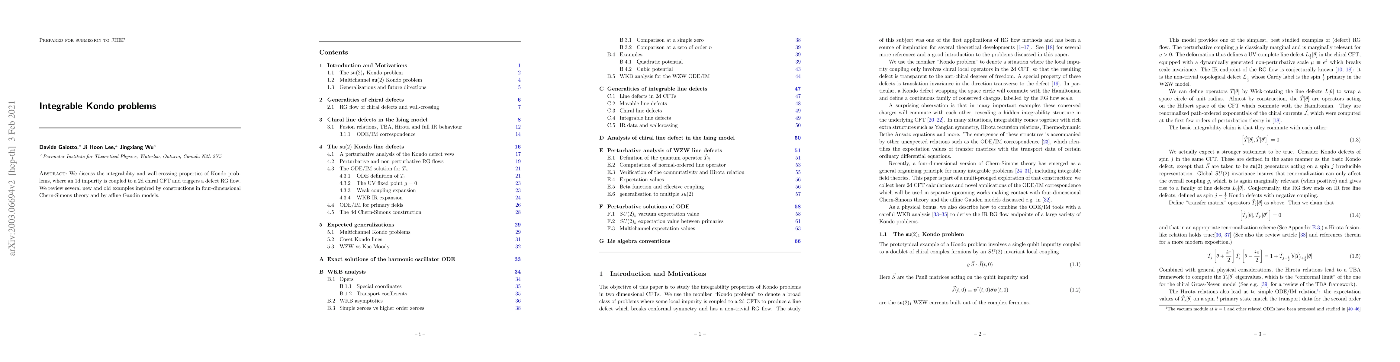 The paper presents a detailed review and analysis of integrable Kondo problems, identifying integrable modules and modifying WKB analysis for local problems, leading to perturbative expansions for Tn;l and Q-functions.