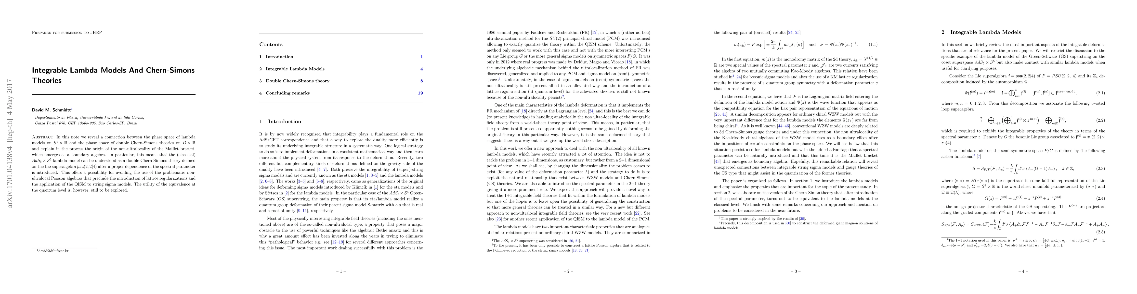 In this note we reveal a connection between the phase space of lambda models on $S^{1}\times \mathbb{R}$ and the phase space of double Chern-Simons theories on $D\times \mathbb{R}$ and explain in the process the origin of the non-ultralocality of the Maillet bracket, which emerges as a boundary algebra. In particular, this means that the (classical) $AdS_{5}\times S^{5}$ lambda model can be understood as a double Chern-Simons theory defined on the Lie superalgebra $\mathfrak{psu}(2,2|4)$ after a proper dependence of the spectral parameter is introduced. This offers a possibility for avoiding the use of the problematic non-ultralocal Poisson algebras that preclude the introduction of lattice regularizations and the application of the QISM to string sigma models. The utility of the equivalence at the quantum level is, however, still to be explored.