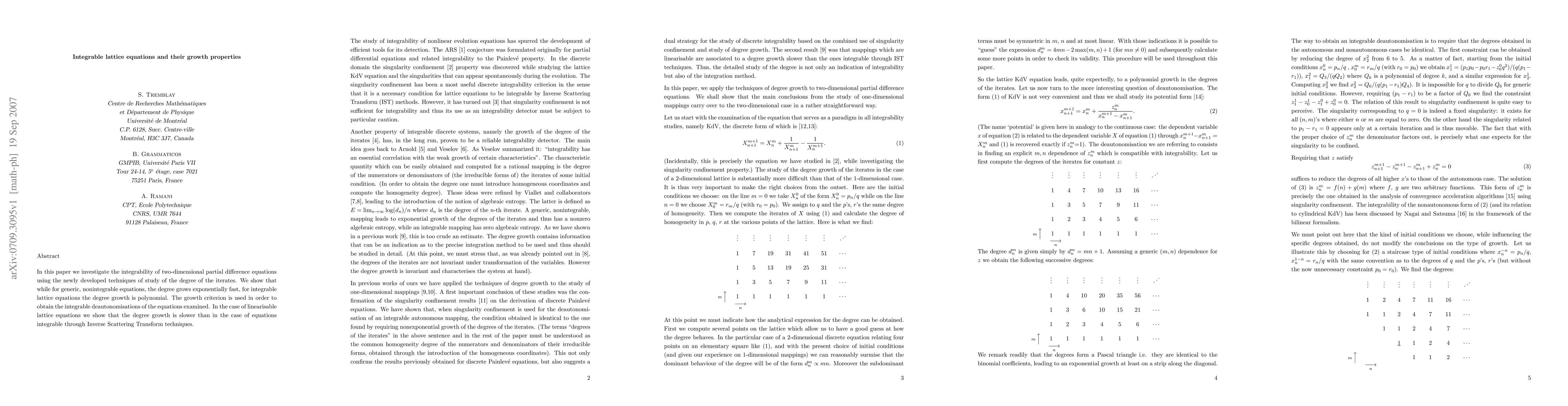 This paper explores the integrability of two-dimensional partial difference equations, demonstrating that while nonintegrable equations exhibit exponential growth in degree, integrable lattice equations show polynomial growth. The study uses growth criteria to derive integrable deautonomisations and finds that linearisable equations grow more slowly than those solved via Inverse Scattering Transform techniques.