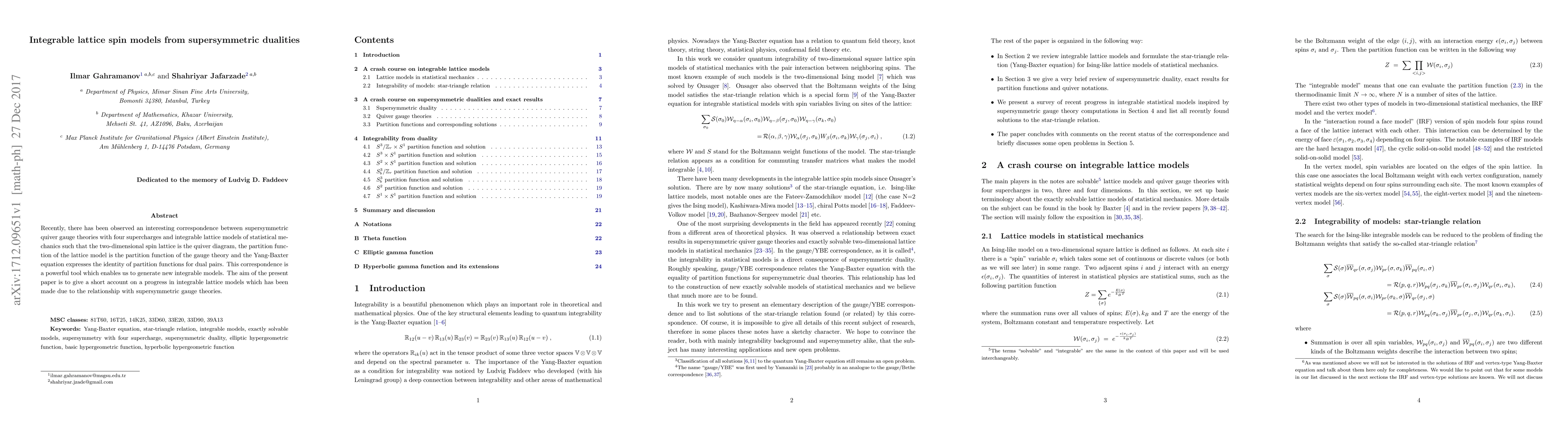 The paper introduces new integrable lattice models derived from supersymmetric gauge theories and presents various solutions to the star-triangle relation, enriching the field of integrable systems.