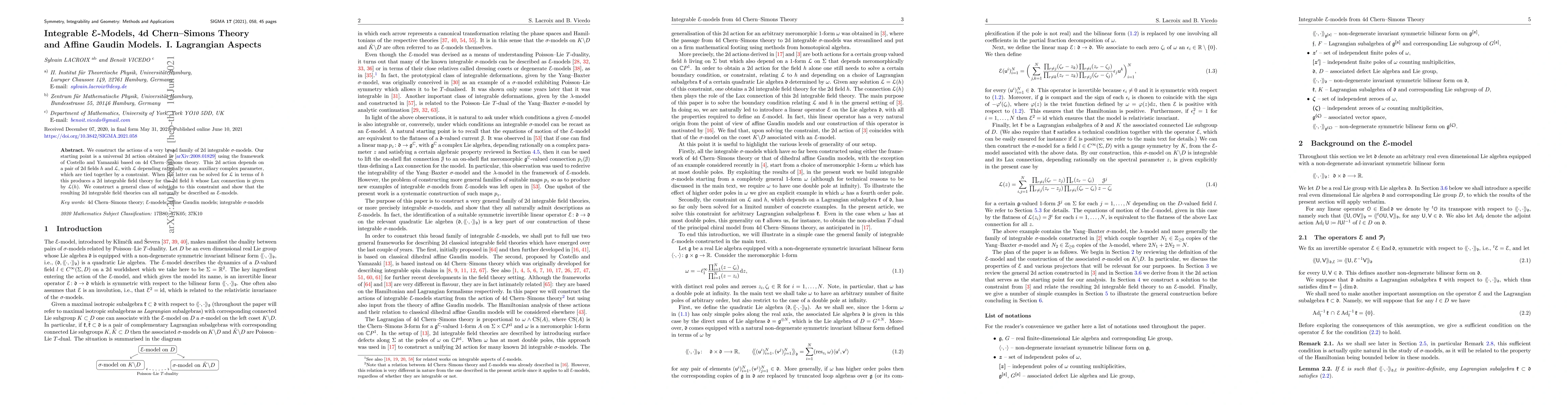 This paper constructs the actions for a wide range of 2d integrable $\sigma$-models derived from a universal 2d action based on 4d Chern-Simons theory, showing that these can be described as $\mathcal{E}$-models through a constraint on fields $h$ and $\mathcal{L}$.