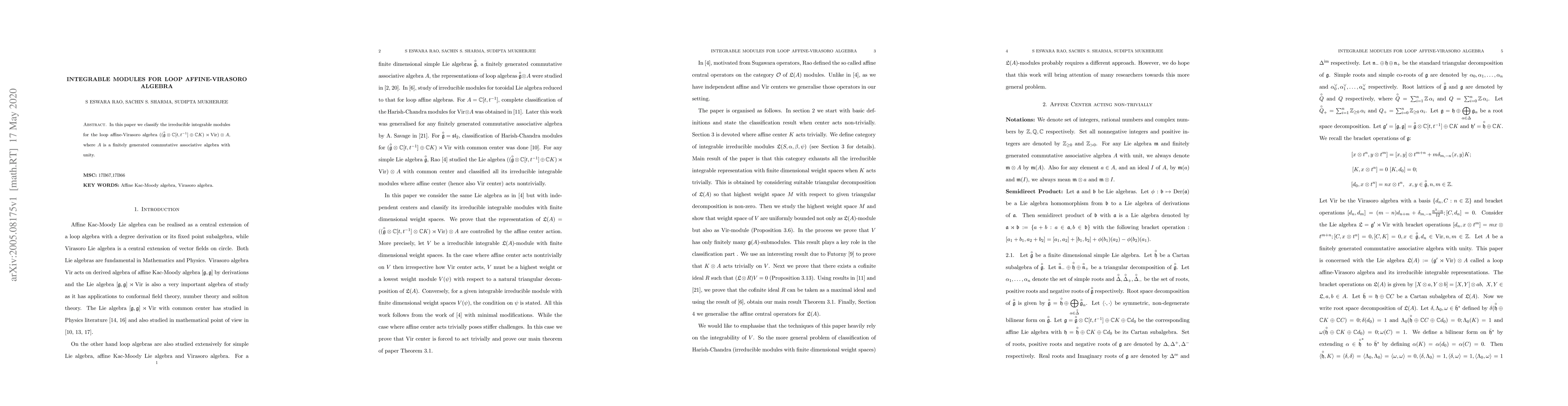 The paper introduces a systematic classification method for integrable modules, leveraging properties of a finitely generated commutative algebra.