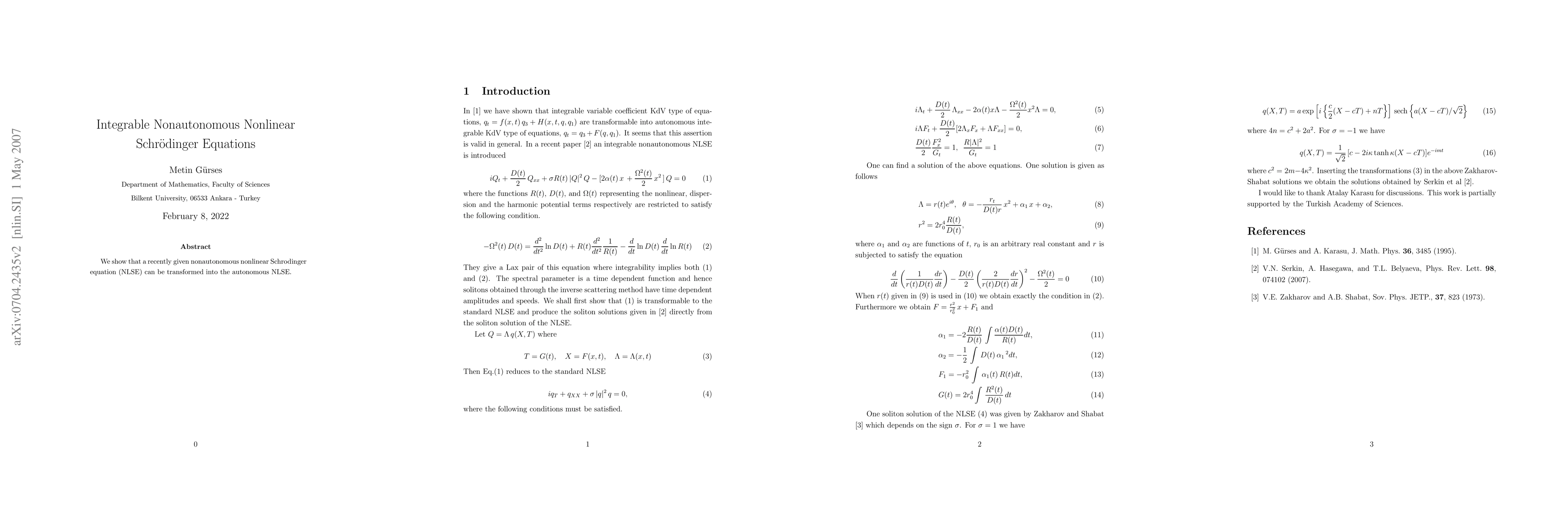 Researchers demonstrate that a nonautonomous nonlinear Schrodinger equation can be transformed into an autonomous one, offering new insights into the dynamics of quantum systems.