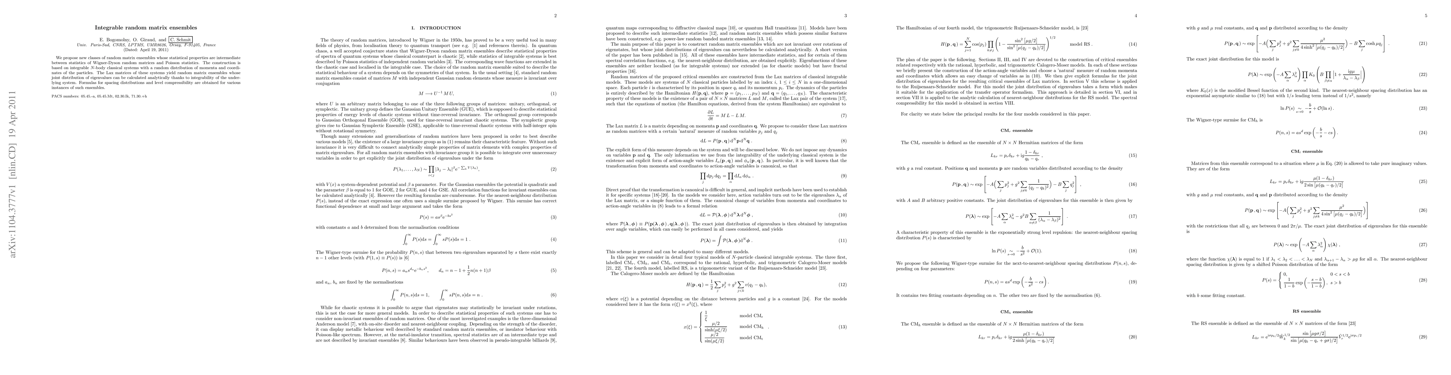 The paper presents a detailed construction and analysis of integrable random matrix ensembles, deriving analytical expressions for their spectral properties, which is a technical advancement in random matrix theory.