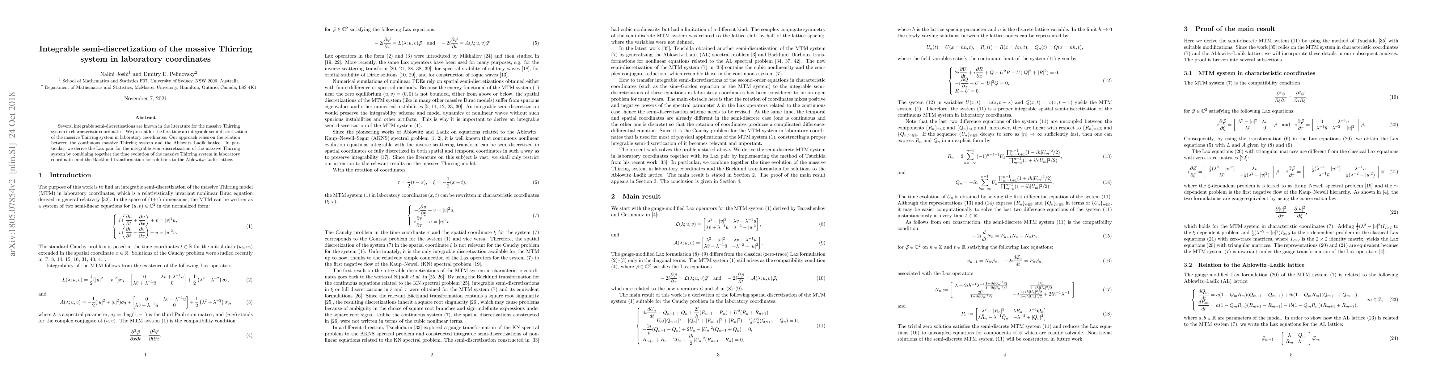 The research uses the relation between the continuous massive Thirring system and the Ablowitz-Ladik lattice to derive an integrable semi-discretization in laboratory coordinates.