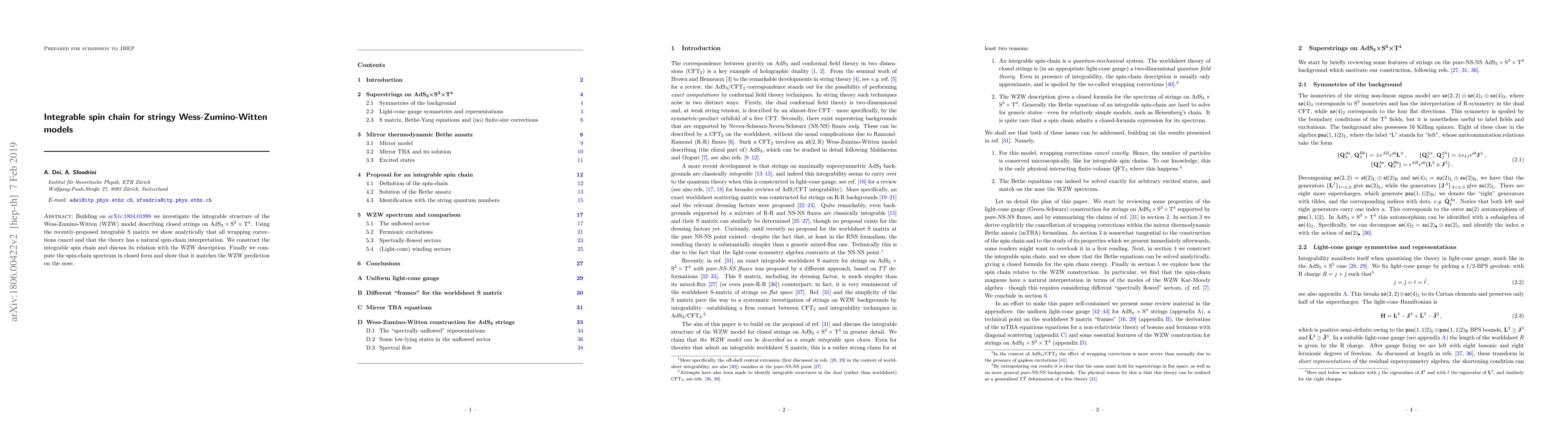 Building on arXiv:1804.01998 we investigate the integrable structure of the Wess-Zumino-Witten (WZW) model describing closed strings on $AdS_3\times S^3\times T^4$. Using the recently-proposed integrable S matrix we show analytically that all wrapping corrections cancel and that the theory has a natural spin-chain interpretation. We construct the integrable spin chain and discuss its relation with the WZW description. Finally we compute the spin-chain spectrum in closed form and show that it matches the WZW prediction on the nose.