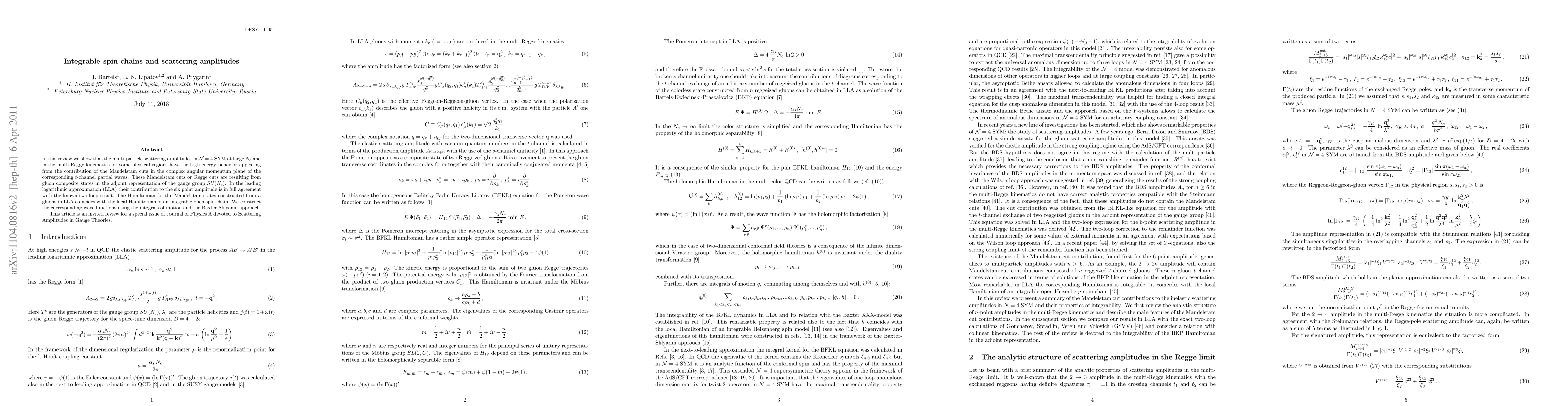This review demonstrates that multi-particle scattering amplitudes in N=4 SYM at large Nc align with integrable spin chain dynamics, revealing a connection between Mandelstam cuts and gluon composite states. The Hamiltonian for these states matches that of an integrable open spin chain, with wave functions derived using the Baxter-Sklyanin approach.