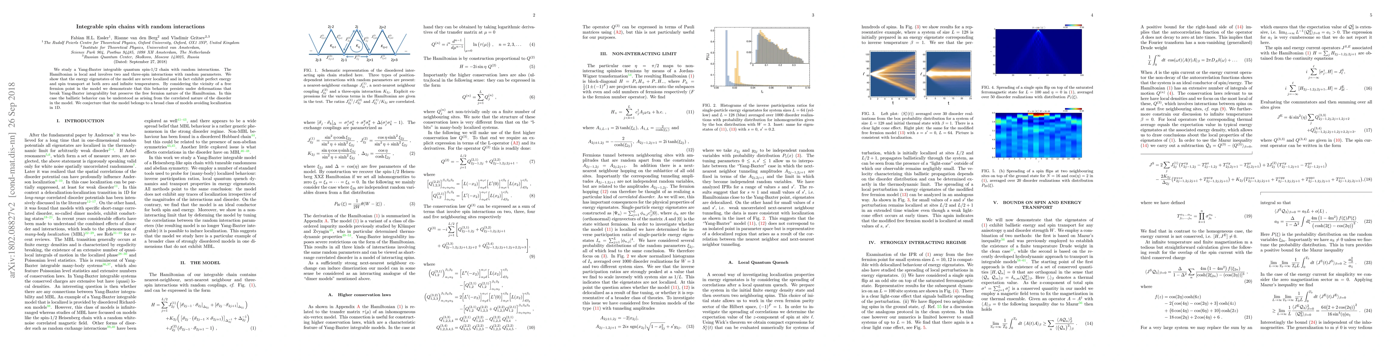 We study a Yang-Baxter integrable quantum spin-1/2 chain with random interactions. The Hamiltonian is local and involves two and three-spin interactions with random parameters. We show that the energy eigenstates of the model are never localized and in fact exhibit perfect energy and spin transport at both zero and infinite temperatures. By considering the vicinity of a free fermion point in the model we demonstrate that this behavior persists under deformations that break integrability but preserve the free fermion nature of the Hamiltonian. In this case the ballistic behavior can be understood as arising from the correlated nature of the disorder in the model. We conjecture that the model belongs to a broad class of models avoiding localization in 1D.