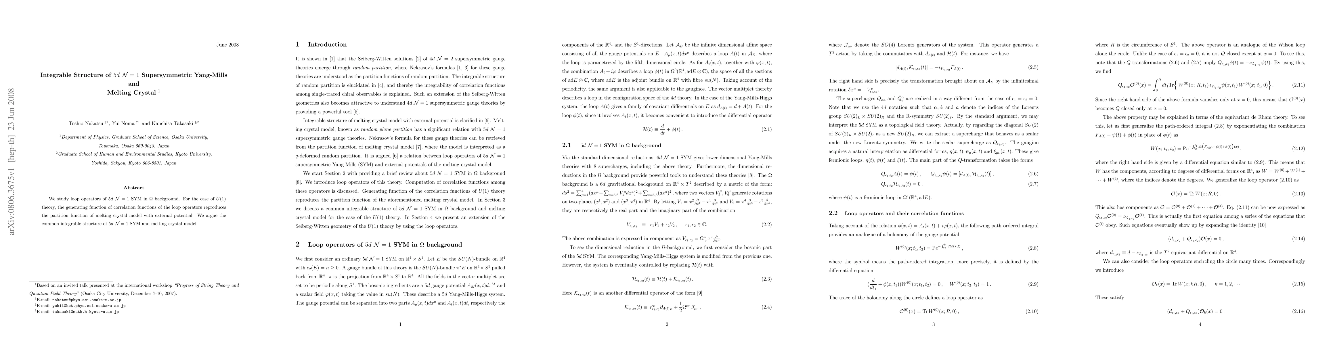 The research explores loop operators in $5d$ $\mathcal{N}=1$ SYM within an $\Omega$ background, revealing that the generating function of their correlation functions mirrors the partition function of a melting crystal model with an external potential. It posits an underlying integrable structure shared by $5d$ $\mathcal{N}=1$ SYM and the melting crystal model.
