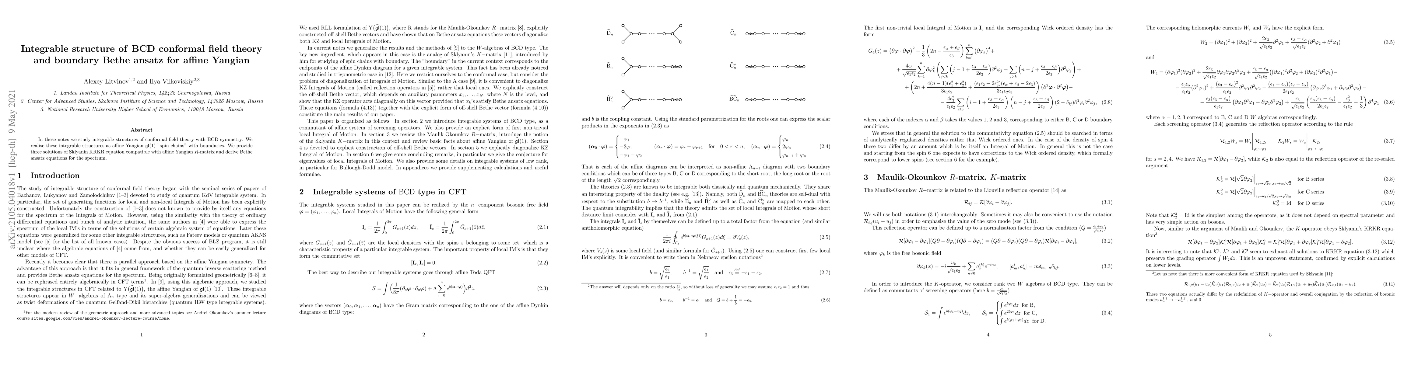 This work contributes to understanding integrable structures in conformal field theories with $\textrm{BCD}$ symmetry, which has implications for quantum integrable models and conformal field theory.