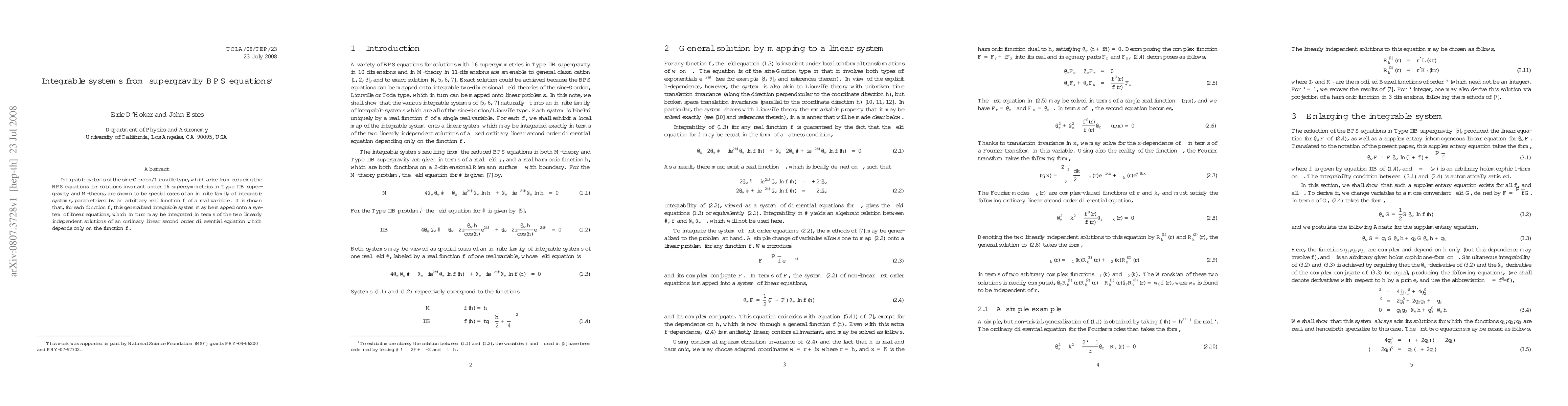 Integrable systems of the sine-Gordon/Liouville type, which arise from reducing the BPS equations for solutions invariant under 16 supersymmetries in Type IIB supergravity and M-theory, are shown to be special cases of an infinite family of integrable systems, parametrized by an arbitrary real function $f$ of a real variable. It is shown that, for each function $f$, this generalized integrable system may be mapped onto a system of linear equations, which in turn may be integrated in terms of the two linearly independent solutions of an ordinary linear second order differential equation which depends only on the function $f$.