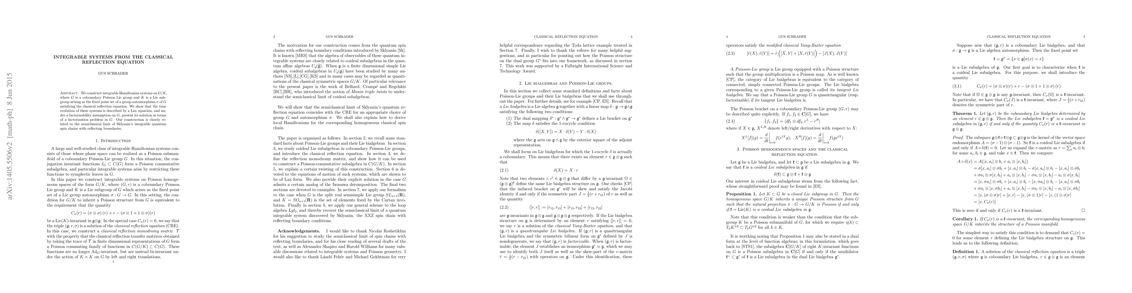 This paper constructs integrable Hamiltonian systems on $G/K$ using quasitriangular Poisson Lie groups and constructs solutions via Lax equations, linking these systems to the semiclassical limit of Sklyanin's quantum spin chains with reflecting boundaries.