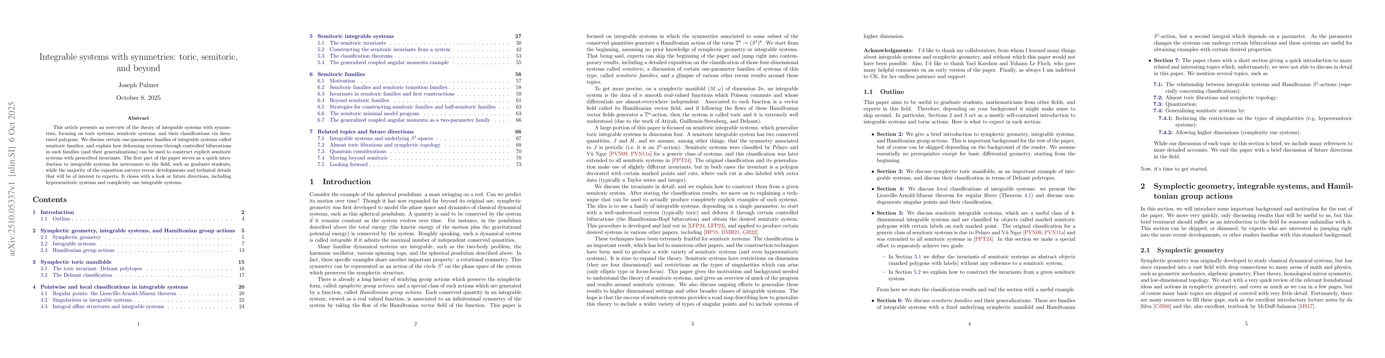 This article presents an overview of the theory of integrable systems with symmetries, focusing on toric systems, semitoric systems, and their classifications via decorated polygons. We discuss certain one-parameter families of integrable systems called semitoric families, and explain how deforming systems through controlled bifurcations in such families (and their generalizations) can be used to construct explicit semitoric systems with prescribed invariants. The first part of the paper serves as a quick introduction to integrable systems for newcomers to the field, such as graduate students, while the majority of the exposition surveys recent developments and technical details that will be of interest to experts. It closes with a look at future directions, including hypersemitoric systems and complexity one integrable systems.
