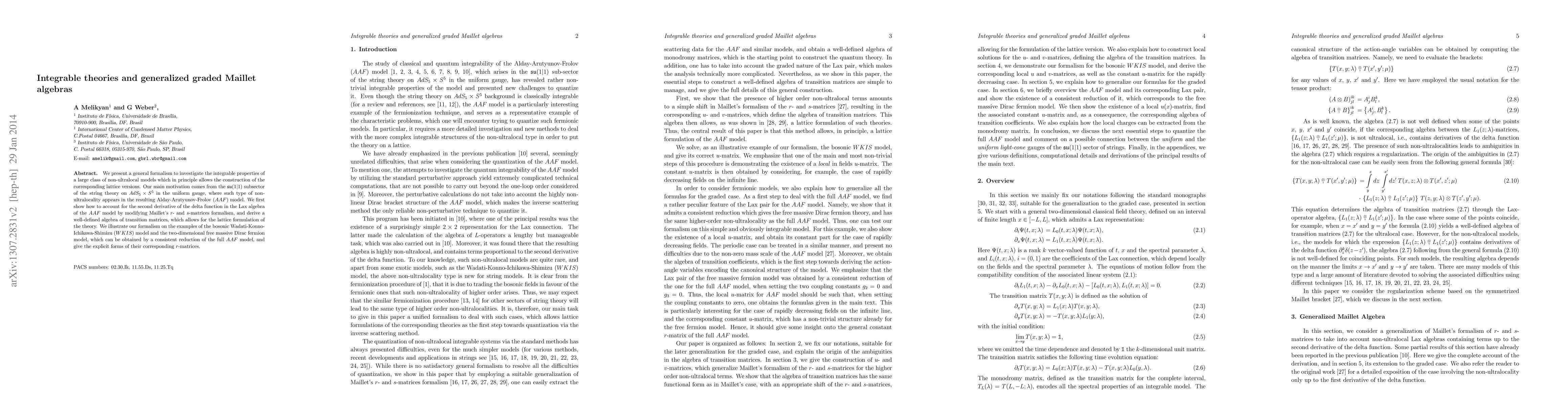 We present a general formalism to investigate the integrable properties of a large class of non-ultralocal models which in principle allows the construction of the corresponding lattice versions. Our main motivation comes from the su(1|1) subsector of the string theory on AdS_5 x S^5 in the uniform gauge, where such type of non-ultralocality appears in the resulting Alday-Arutyunov-Frolov (AAF) model. We first show how to account for the second derivative of the delta function in the Lax algebra of the AAF model by modifying Maillet's r- and s-matrices formalism, and derive a well-defined algebra of transition matrices, which allows for the lattice formulation of the theory. We illustrate our formalism on the examples of the bosonic Wadati-Konno-Ichikawa-Shimizu (WKIS) model and the two-dimensional free massive Dirac fermion model, which can be obtained by a consistent reduction of the full AAF model, and give the explicit forms of their corresponding r-matrices.