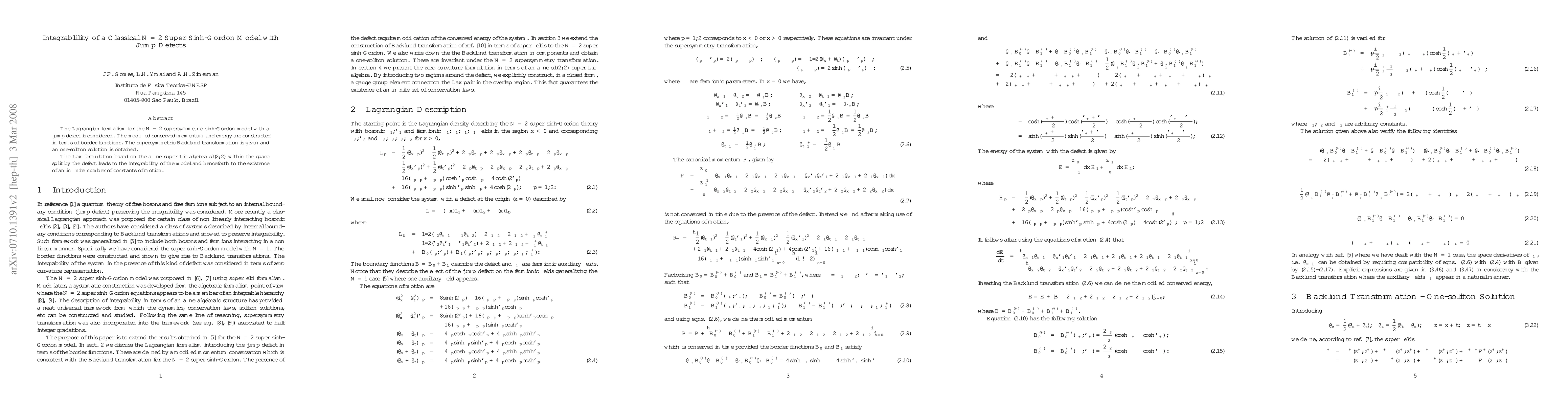 This paper explores the integrability of an N=2 supersymmetric sinh-Gordon model with jump defects, constructing modified conserved quantities and deriving a one-soliton solution. The Lax formulation based on the affine super Lie algebra confirms the model's integrability and the existence of an infinite number of constants of motion.
