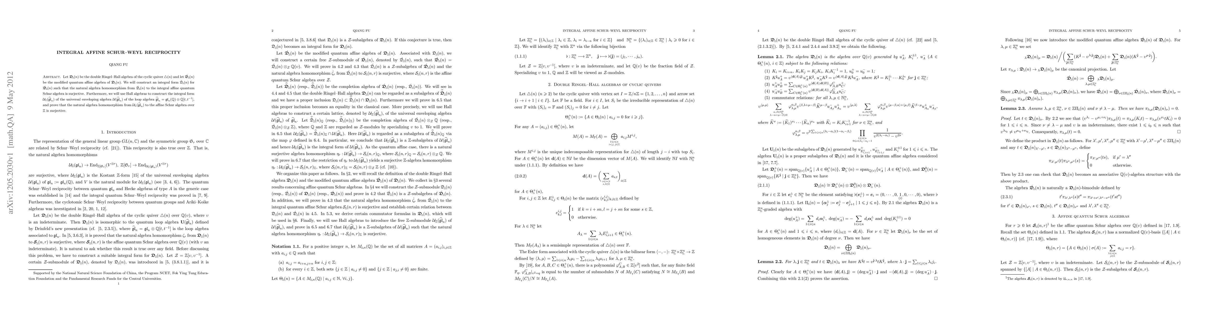 Let ${\boldsymbol{\mathfrak D}_{\vartriangle}}(n)$ be the double Ringel--Hall algebra of the cyclic quiver $\triangle(n)$ and let $\dot{\boldsymbol{\mathfrak D}_{\vartriangle}}(n)$ be the modified quantum affine algebra of ${\boldsymbol{\mathfrak D}_{\vartriangle}}(n)$. We will construct an integral form $\dot{{\mathfrak D}_{\vartriangle}}(n)$ for $\dot{\boldsymbol{\mathfrak D}_{\vartriangle}}(n)$ such that the natural algebra homomorphism from $\dot{{\mathfrak D}_{\vartriangle}}(n)$ to the integral affine quantum Schur algebra is surjective. Furthermore, we will use Hall algebras to construct the integral form ${\mathcal U}_{\mathbb Z}(\hat{\frak{gl}}_n)$ of the universal enveloping algebra ${\mathcal U}(\hat{\frak{gl}}_n)$ of the loop algebra $\hat{\frak{gl}}_n=\frak{gl}_n({\mathbb Q})\otimes\mathbb Q[t,t^{-1}]$, and prove that the natural algebra homomorphism from ${\mathcal U}_\mathbb Z(\hat{\frak{gl}}_n)$ to the affine Schur algebra over $\mathbb Z$ is surjective.
